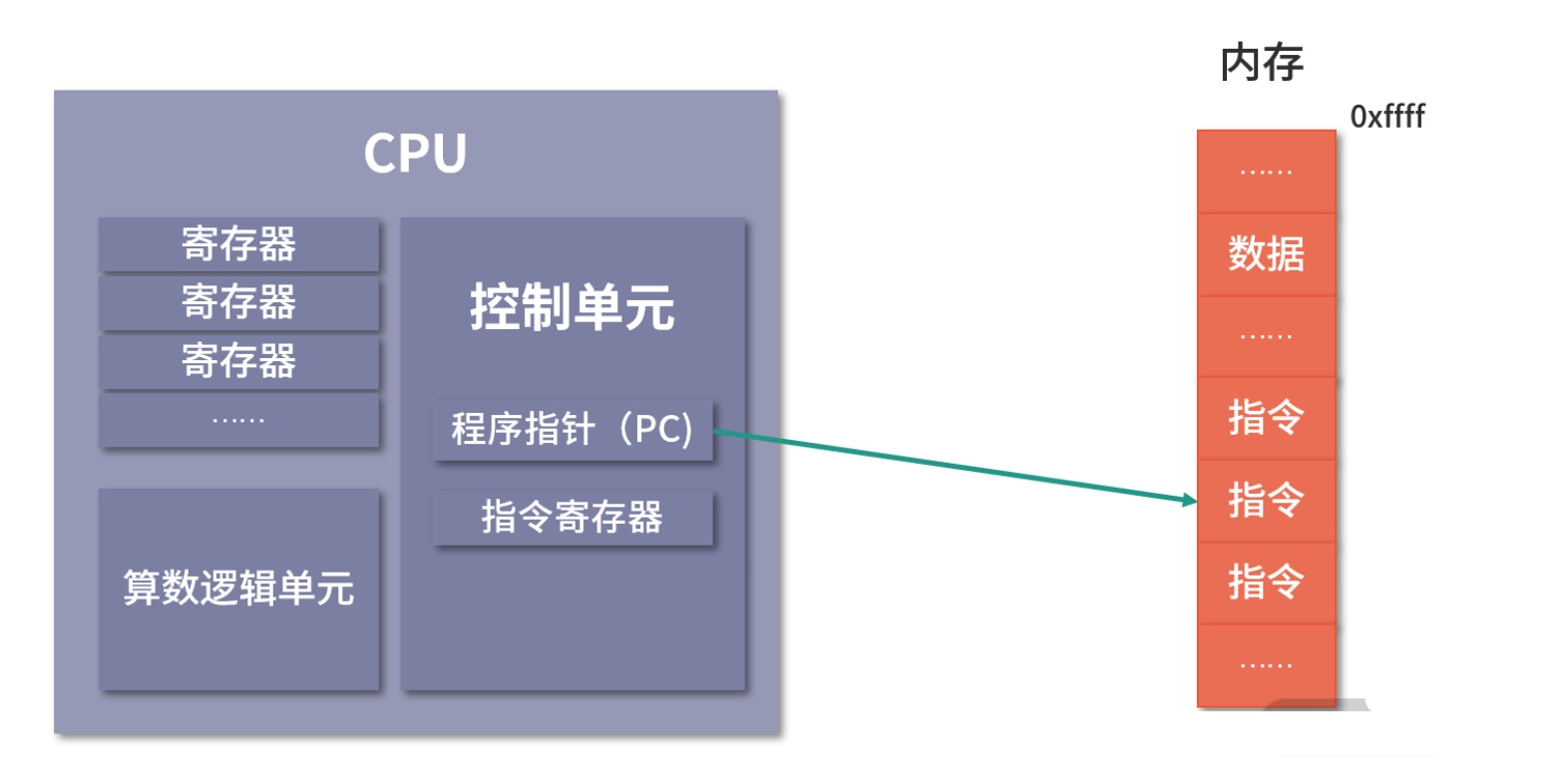 - 程序计数器,用来存储 CPU 要执行下一条指令所在的内存地址,注意不是存储了下一条要执行的指令,此时指令还在内存中,程序计数器只是存储了下一条指令的地址。