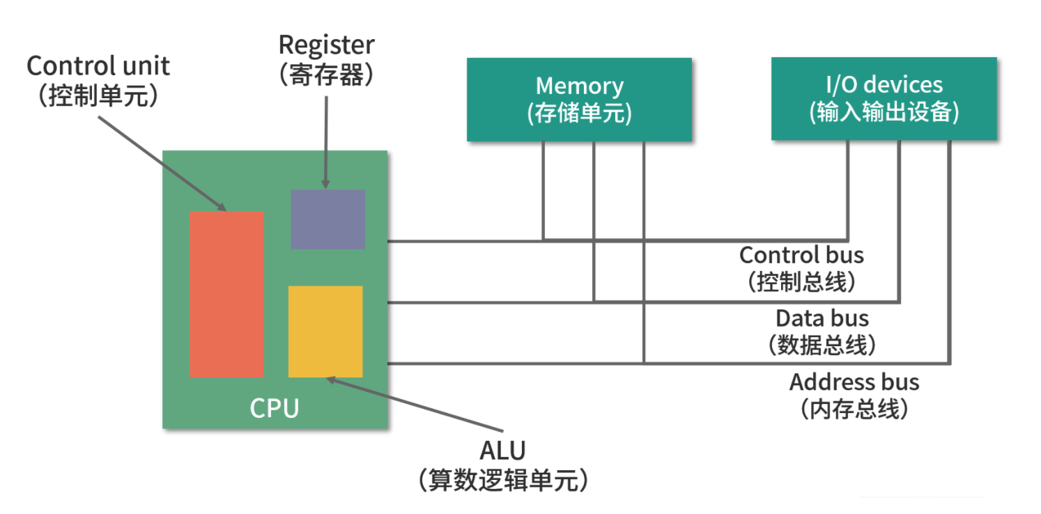 冯诺依曼模型中 CPU 负责控制和计算,为了方便计算较大的数值,CPU 每次可以计算多个字节的数据。