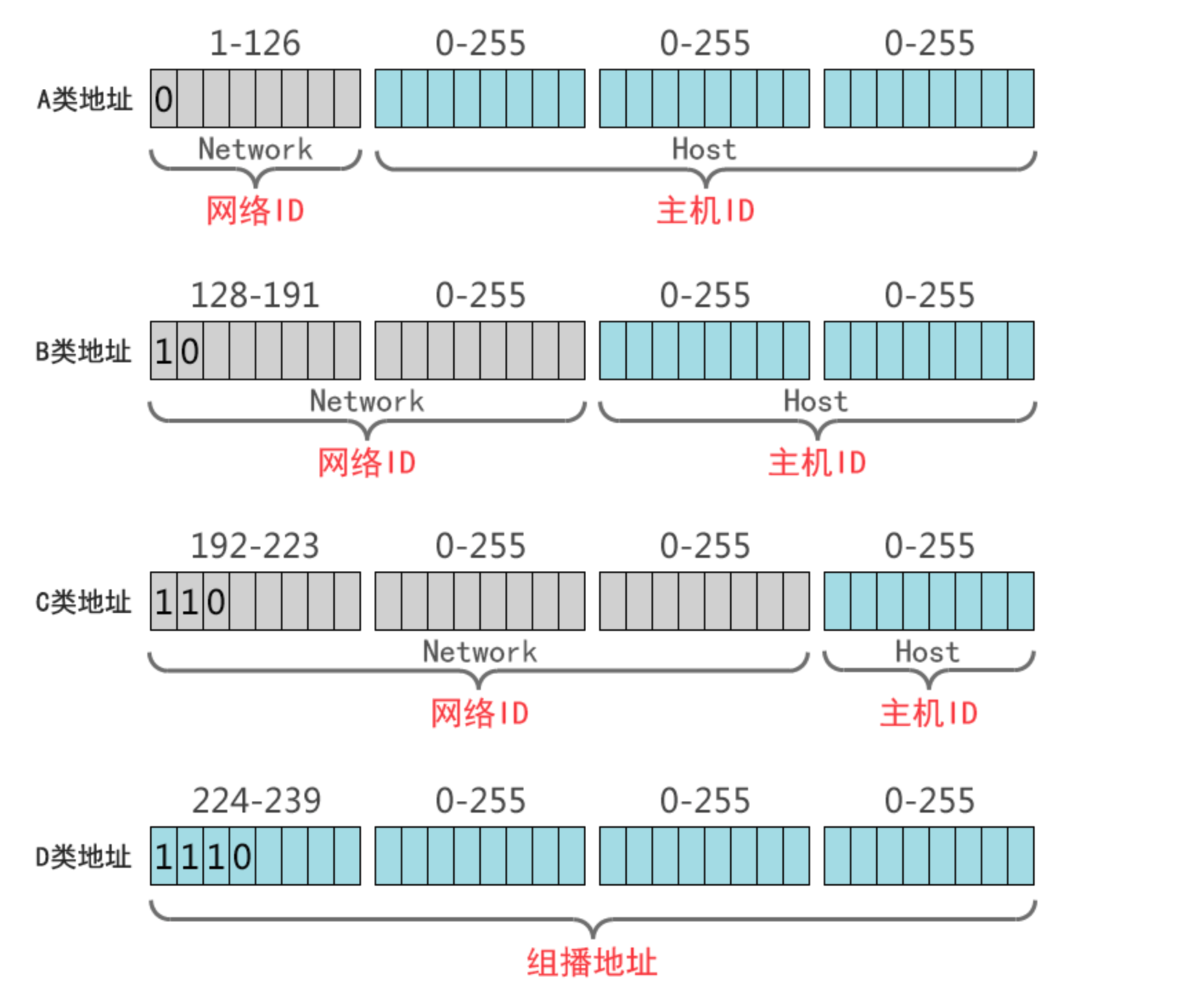- 第三层:网络层,主要是IP协议。主要负责寻址(找到目标设备的位置)