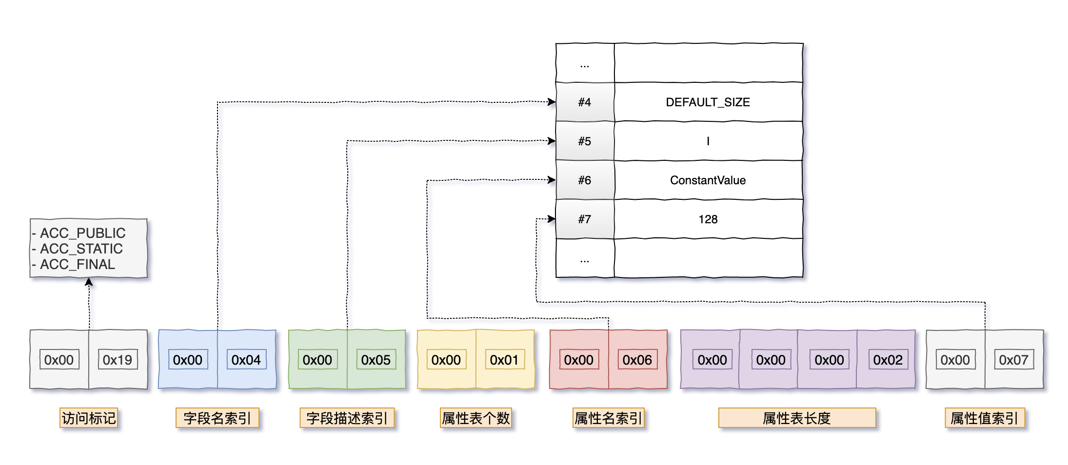 - Constant value index 指向常量池中具体的常量,如果常量类型为 int,指向的就是 CONSTANT_Integer_info。