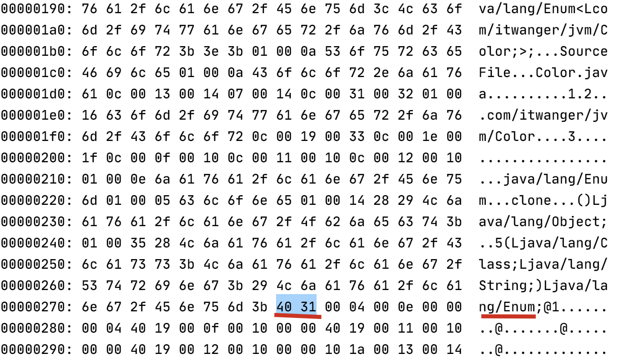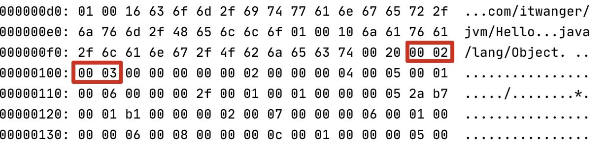 拿 Hello.java 类来说,它的全路径限定名为 com/itwanger/jvm/Hello,对应的十六进制为“636f6d2f697477616e6765722f6a766d2f48656c6c6f”,是一串 CONSTANT_Uft8_info,指向它的 CONSTANT_Class_info 在 class 文件中的什么位置呢?