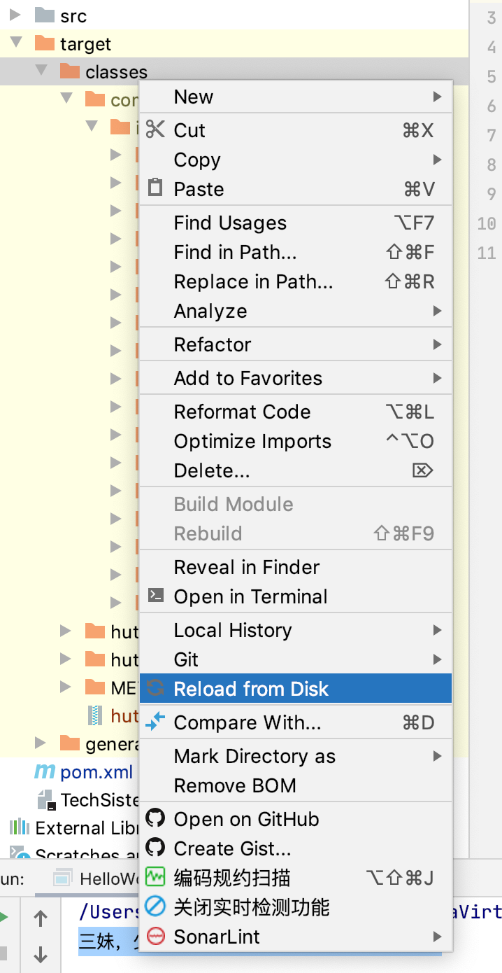 如果找不到的话,在目录上右键选择「Reload from Disk,从磁盘上重新加载」,如下图所示: