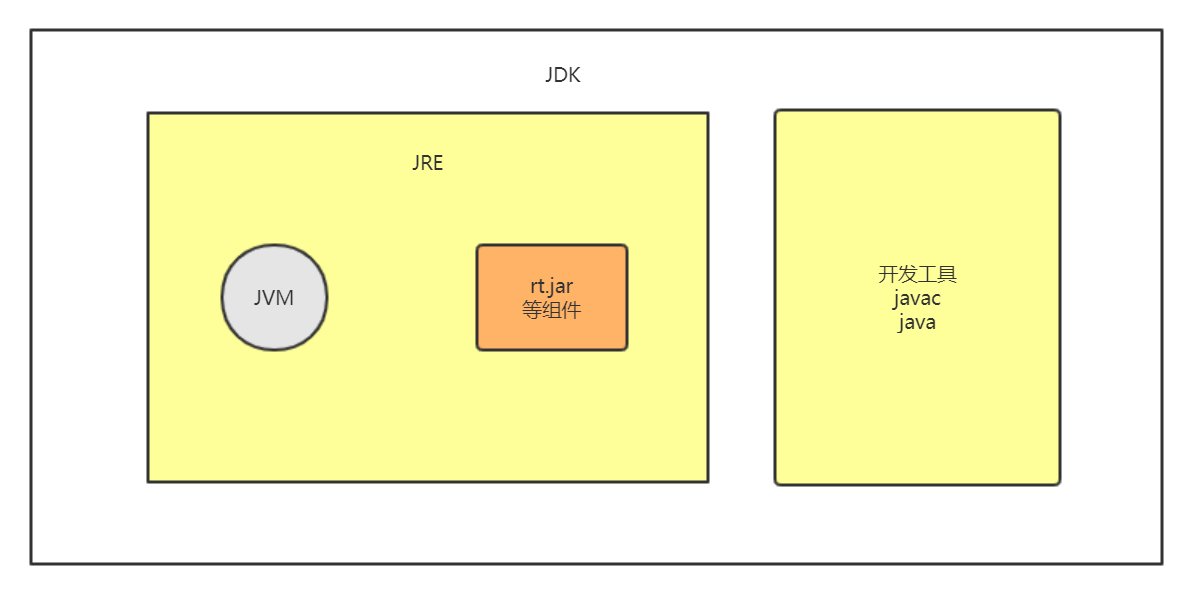 PS:字节码并不是机器码,操作系统无法直接识别,需要在操作系统上安装不同版本的 Java 虚拟机(JVM)来识别。通常情况下,我们只需要安装不同版本的 JDK(Java Development Kit,Java 开发工具包)就行了,它里面包含了 JRE(Java Runtime Environment,Java 运行时环境),而 JRE 又包含了 JVM。