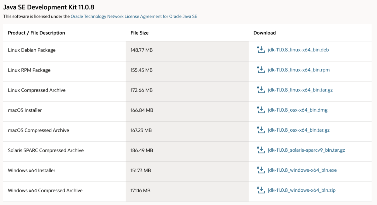 Windows、Linux、MacOS 等操作系统都有相应的 JDK,只要安装好了 JDK 就有了 Java 语言的运行时环境,就可以把一份字节码文件在不同的平台上运行了。可以在 Oracle 官网上下载不同版本的 JDK。
