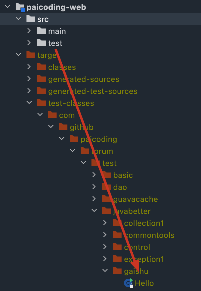 class 文件在 target 目录下,classes 为 src/main 目录下的 class 文件;test-classes 为 src/test 目录下的 class 文件。