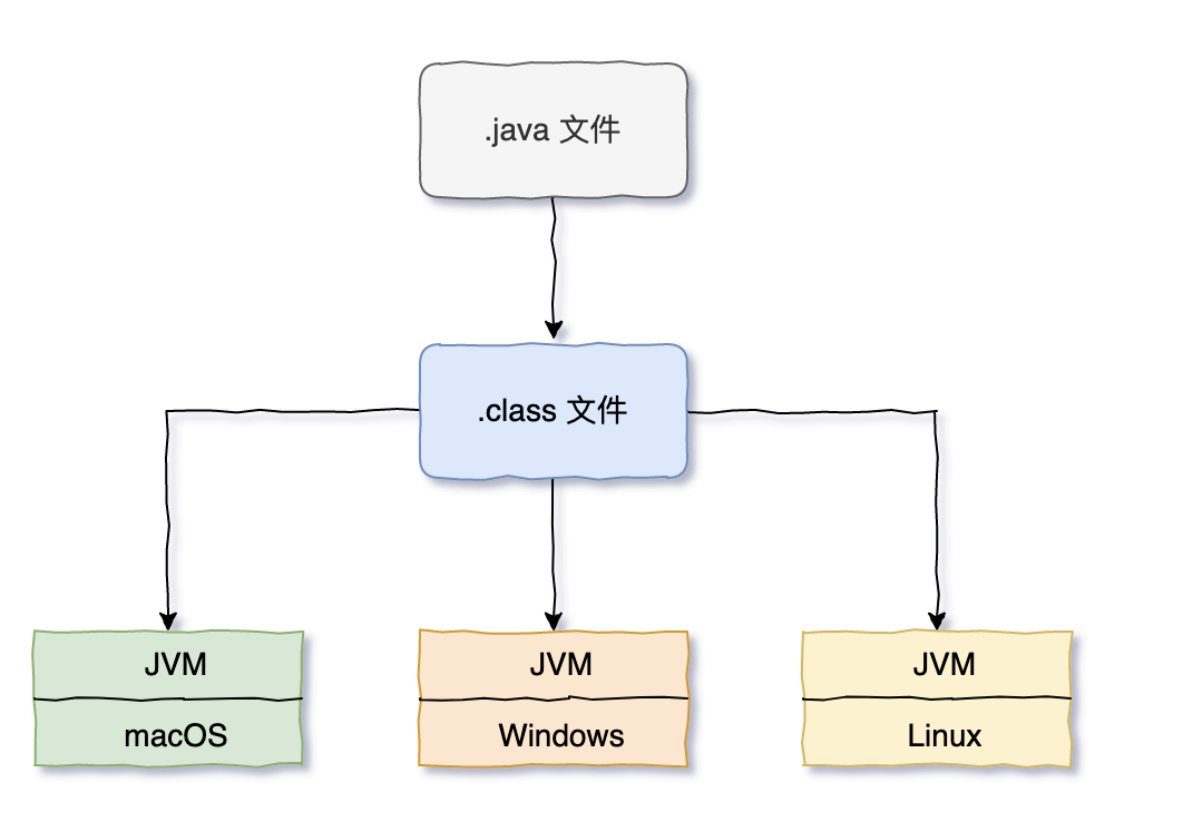 也就是说,为了跨平台,Java 源代码首先会编译成字节码,字节码不是机器语言,需要 JVM 来解释。