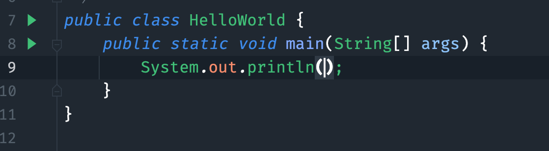 Intellij IDEA 就会帮我们自动添加 System.out.println(),这是一个向控制台输出的方法(小白先不管它是什么意思,后面会讲)。