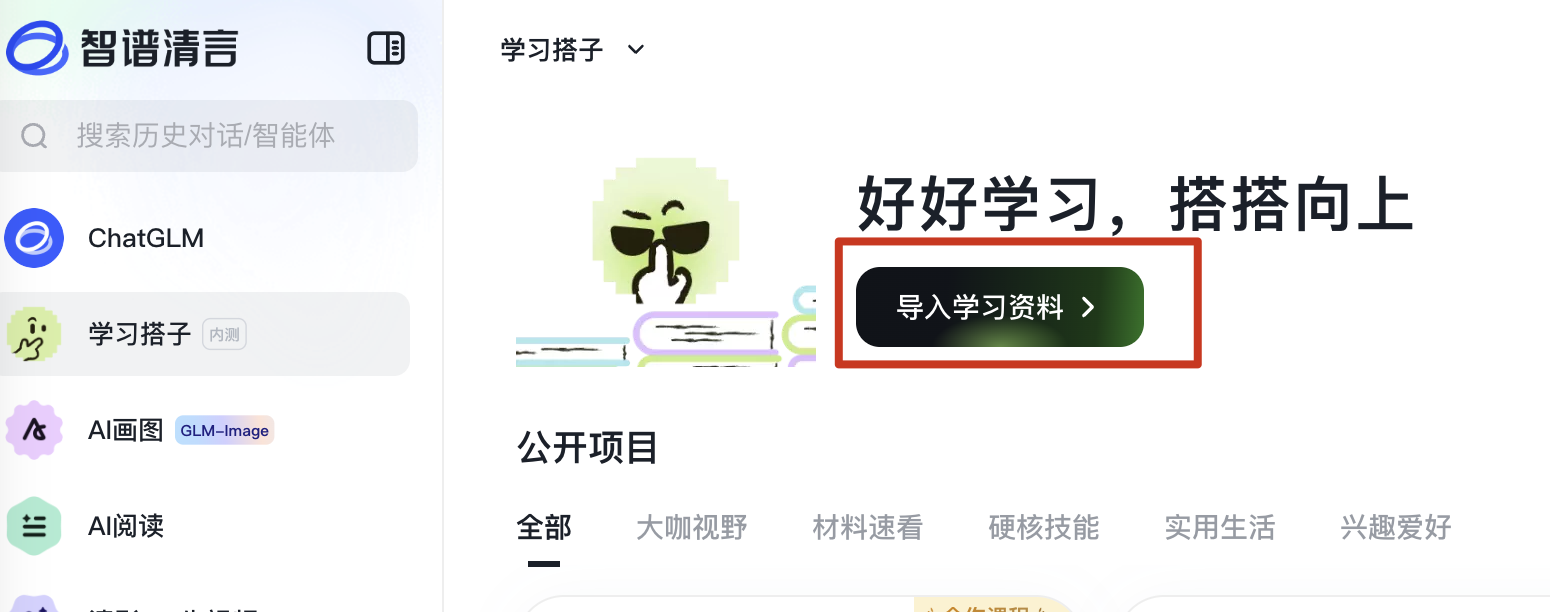 就在刚刚,智谱清言官网悄悄开放了「学习搭子」功能内测。