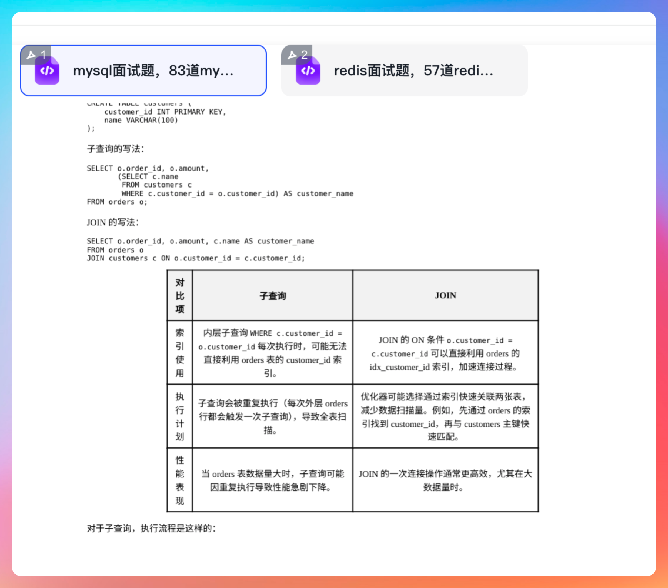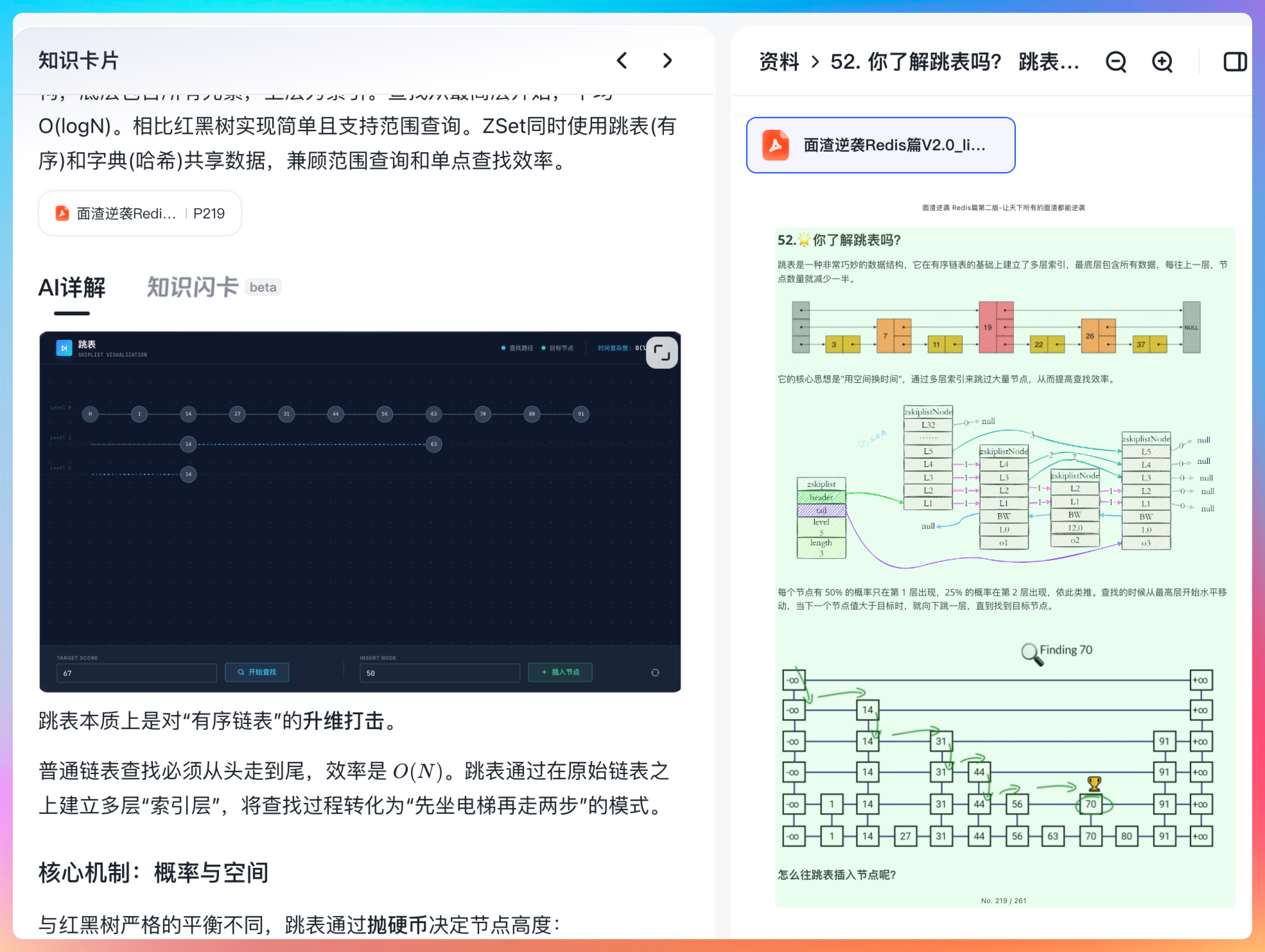 但在AI的辅助下,你一定能真正理解B+树的结构、事务隔离级别的原理、缓存穿透的解决方案,而且还能通过可视化演示加深记忆。