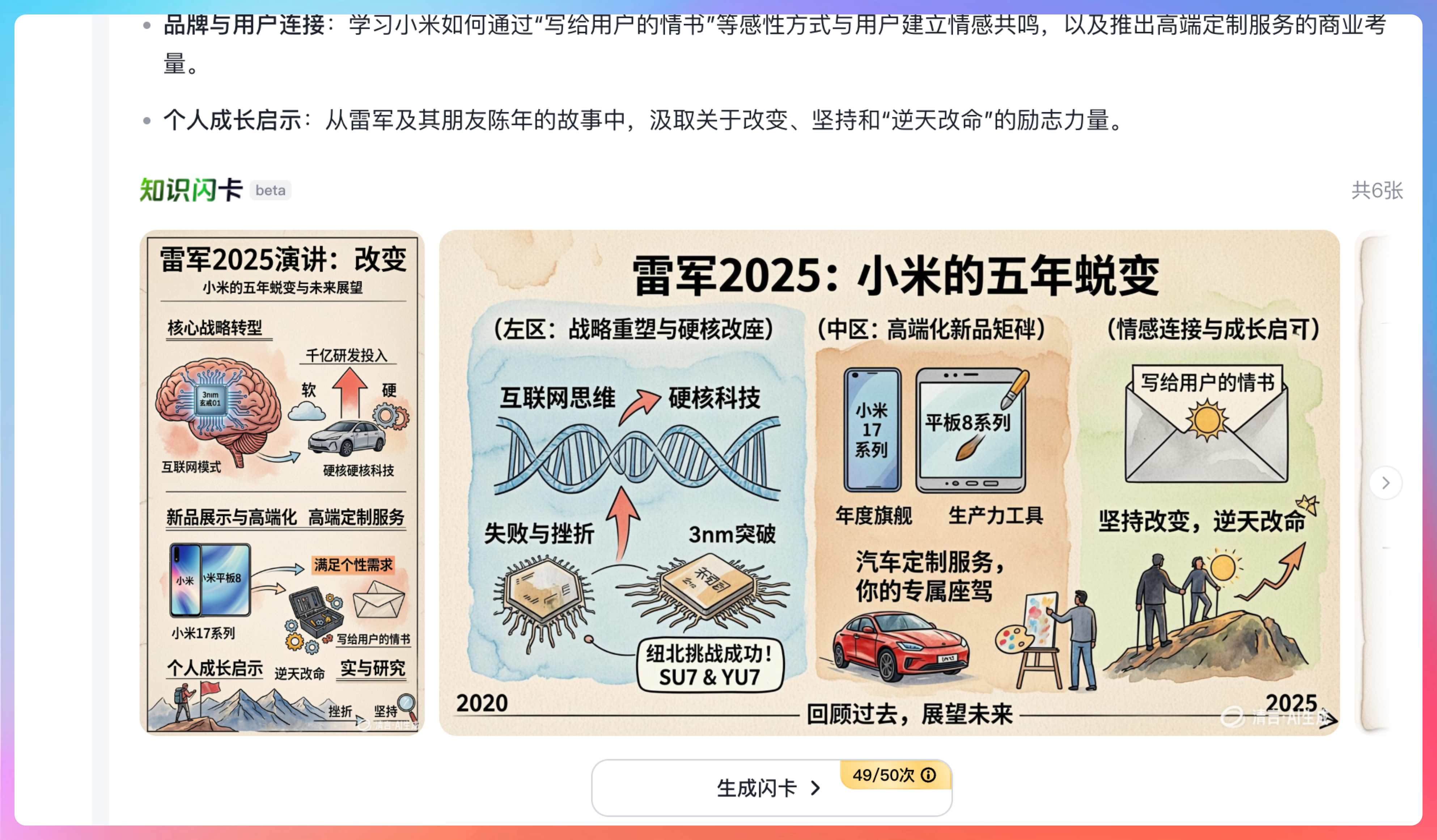 还有一个"一键生成知识闪卡"的功能,会把本节所有内容用图片的方式展现出来,帮助记忆。