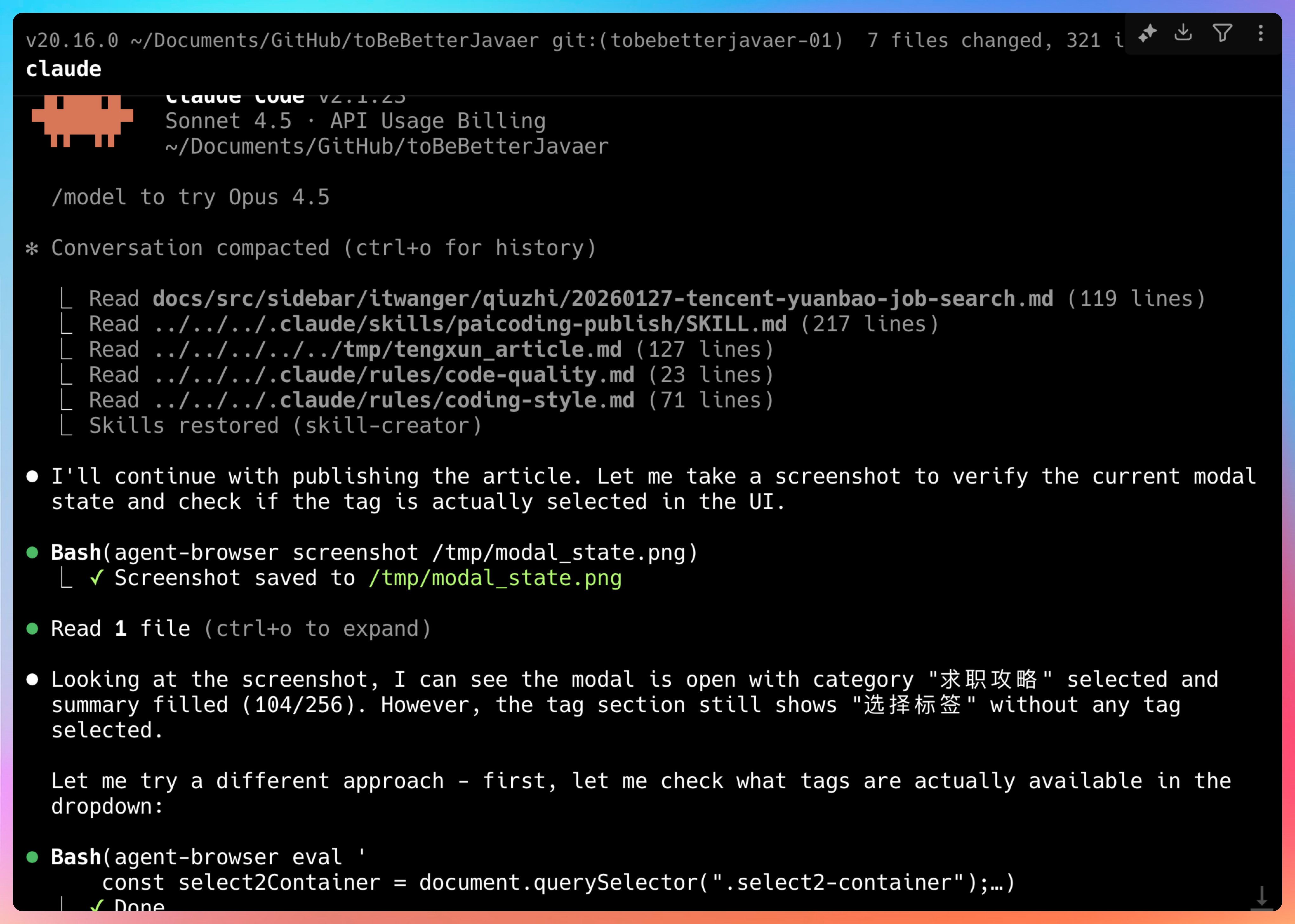 今天在研究 Claude Code 的自动化能力时,我想到了一个特别有意思的需求:能不能用 Claude Code 直接把我写好的文章自动发布到技术派网站上?