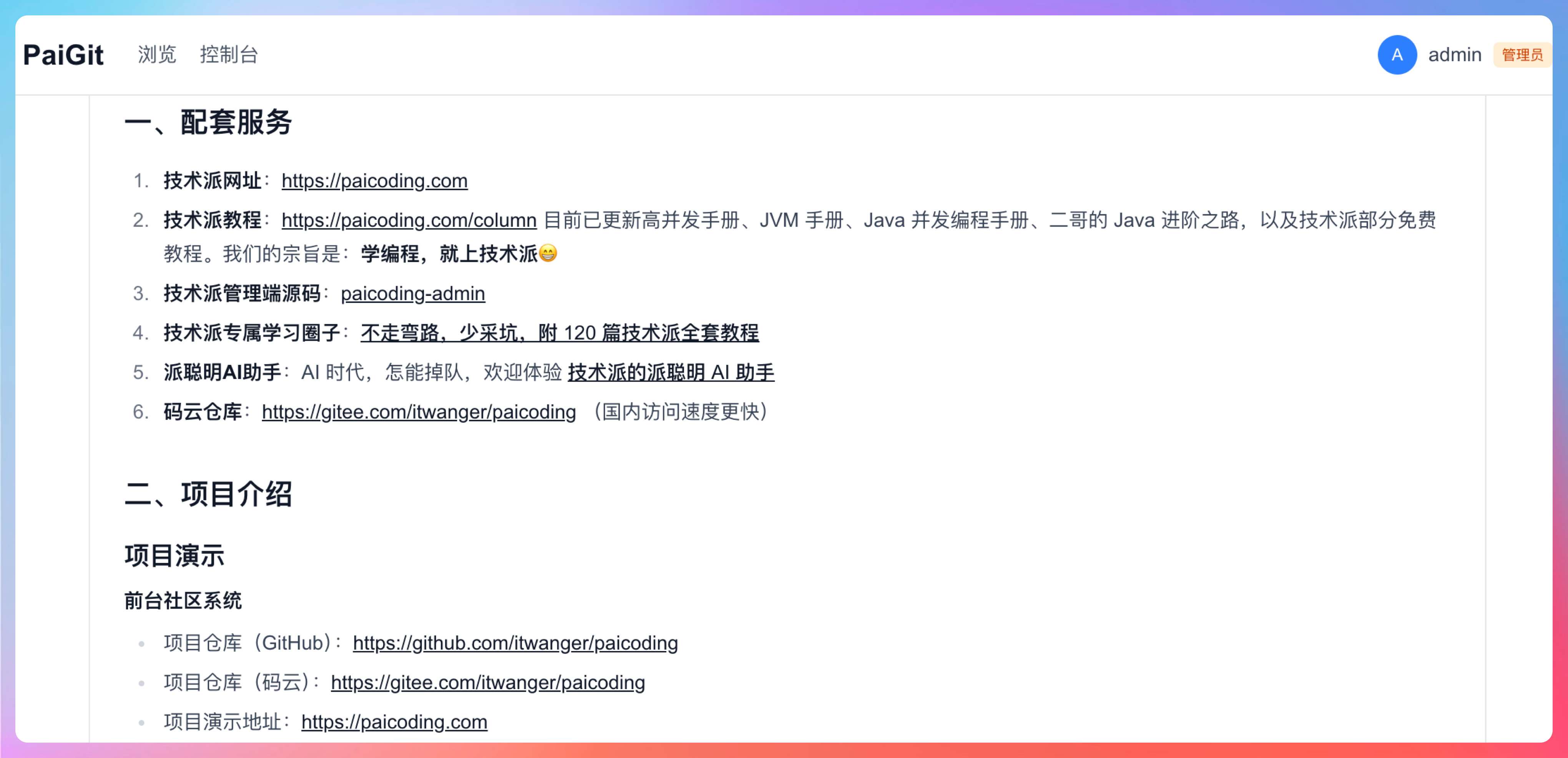 好,上我们的需求:PaiGit 已经可以导入 GitHub 开源项目了,但 README 展示的还不够完美,尤其是链接都没有下划线,鼠标放上去倒是可以点击。