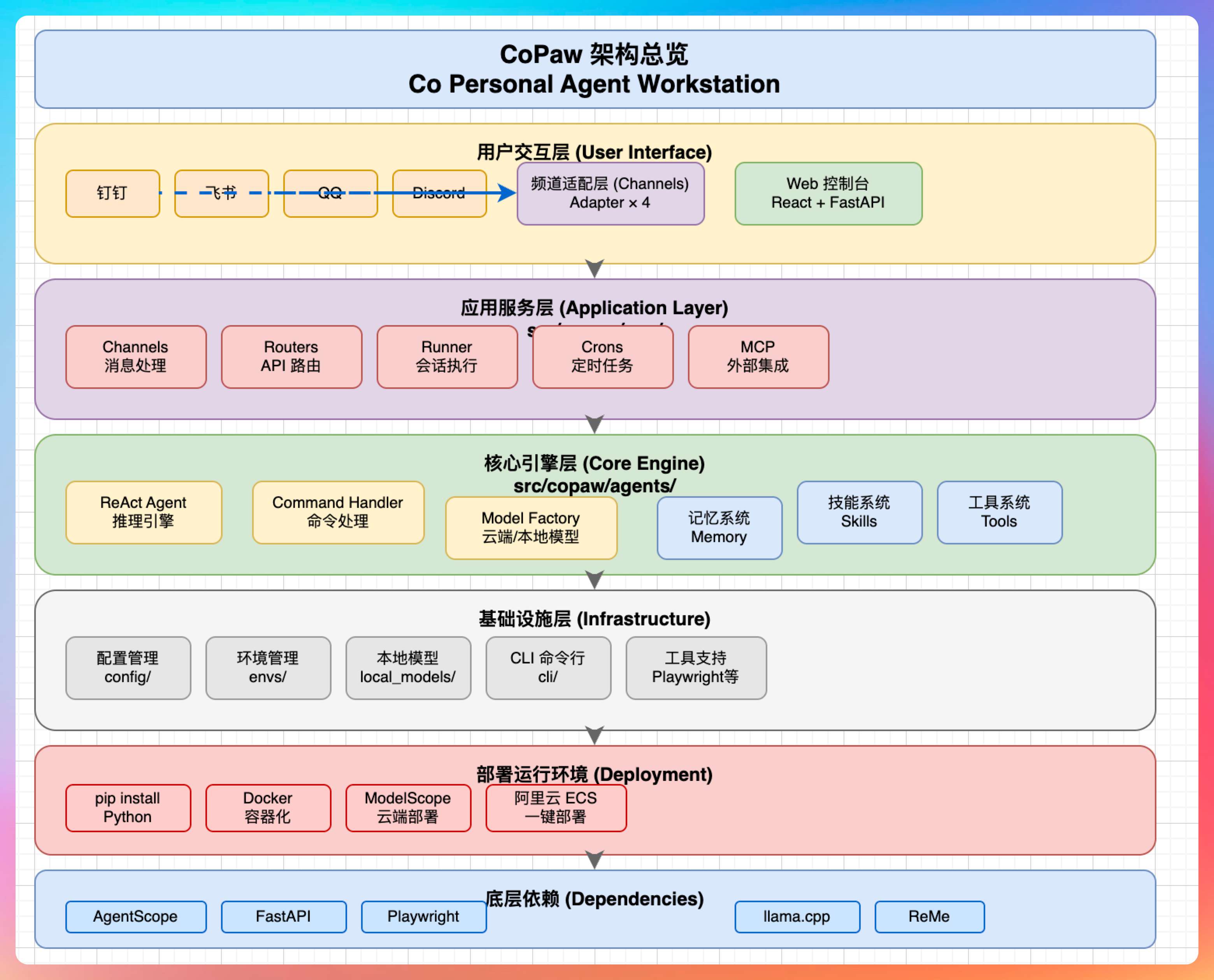 实测完之后,我去研究了一下 CoPaw 的技术架构。