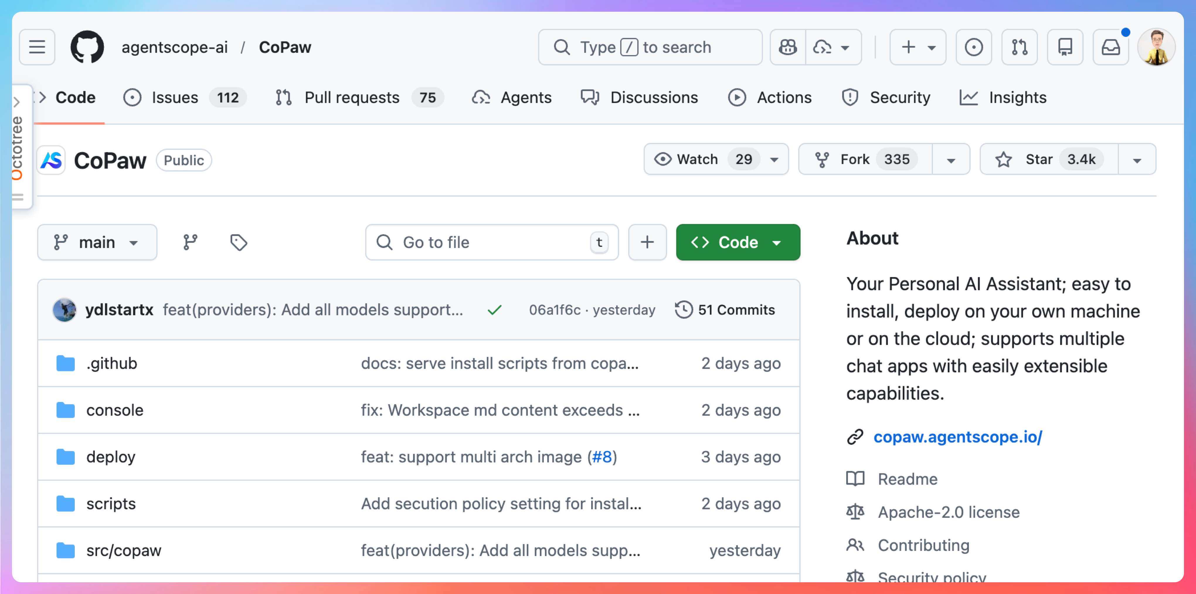 正好阿里的 CoPaw 开源了,我就想试试:能不能用 CoPaw 帮我优化 README 的展示?
