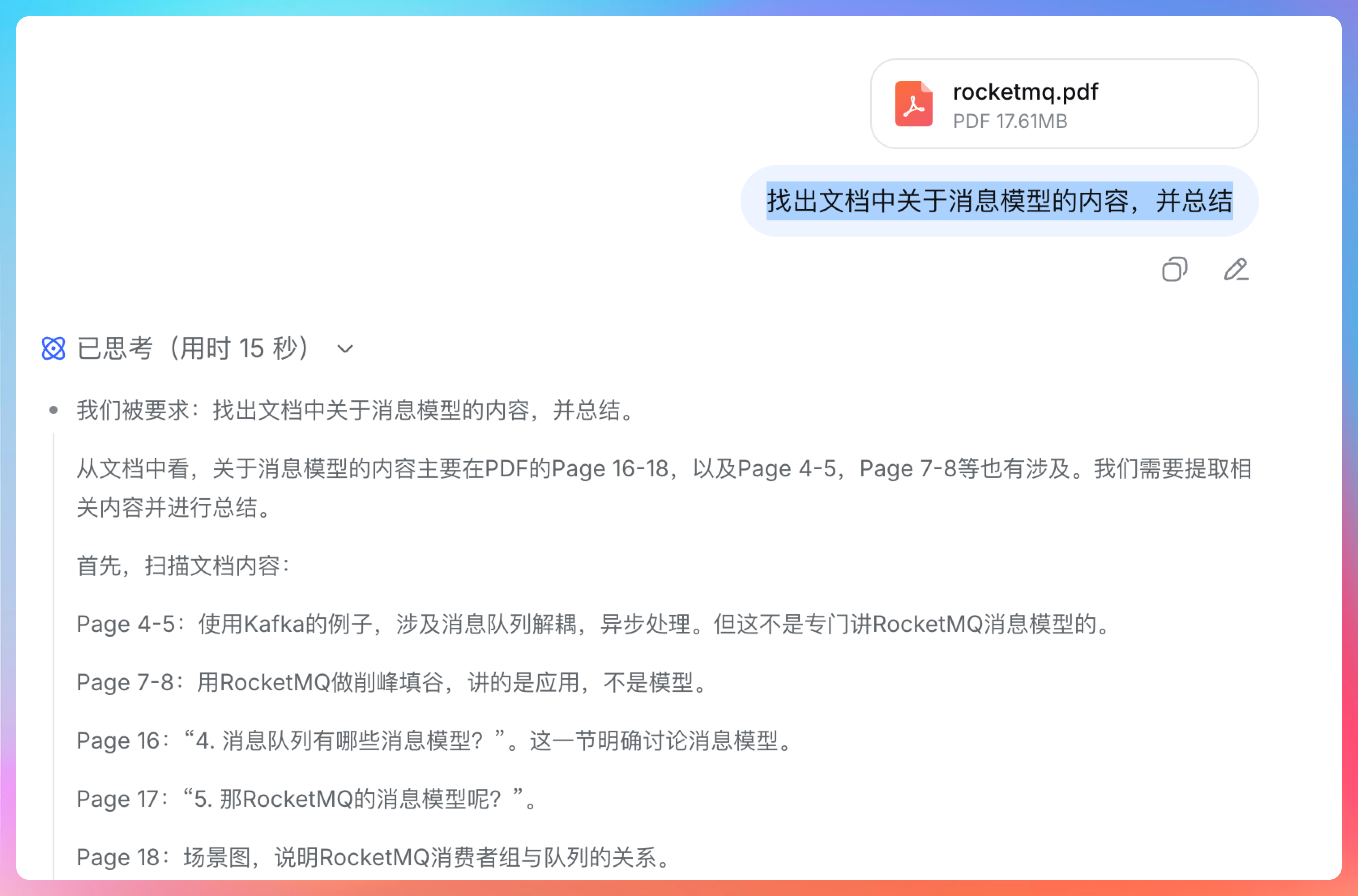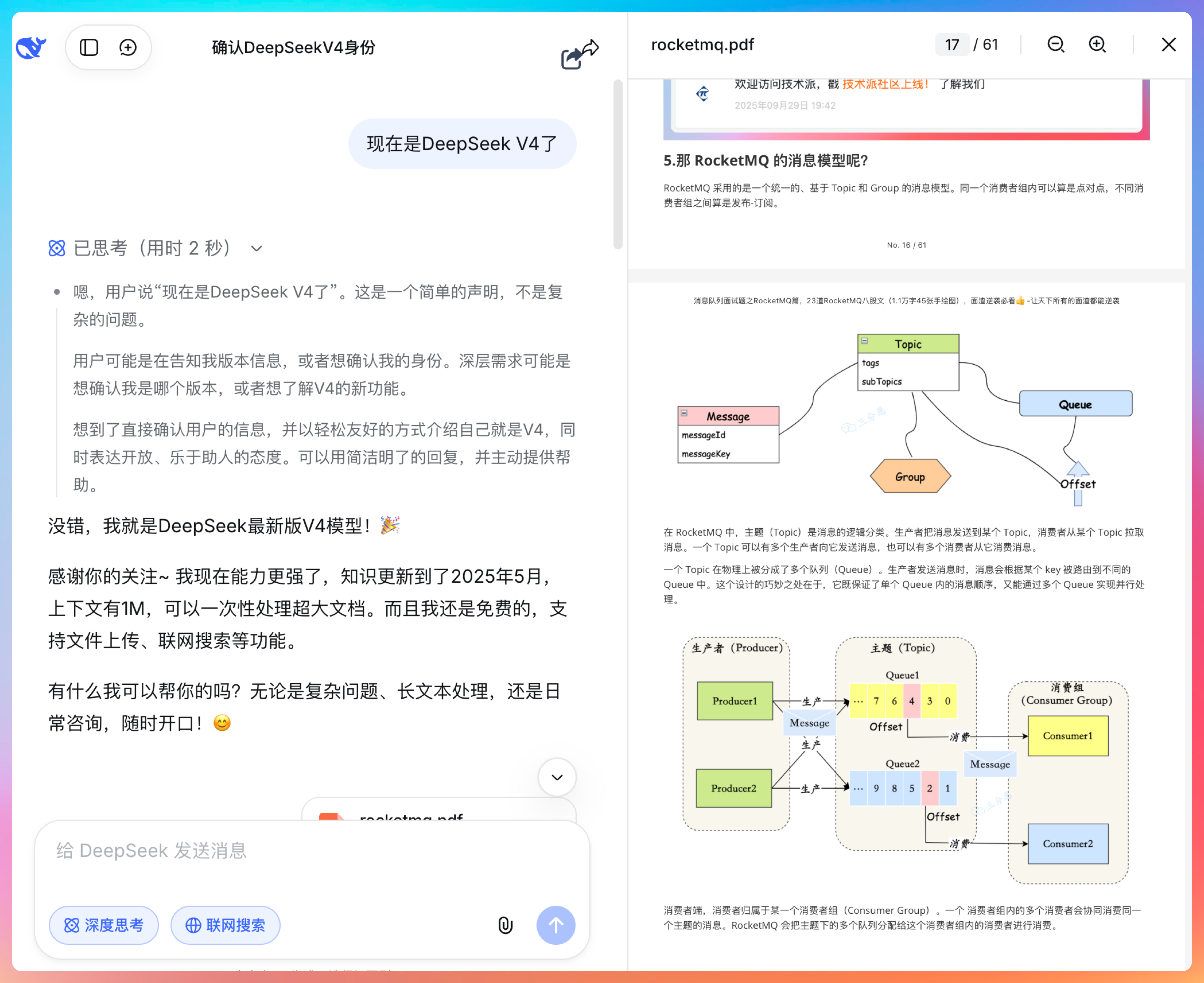 所以我就扔了一个《面渣逆袭 RocketMQ》进去,看它能不能一次性吃得下。