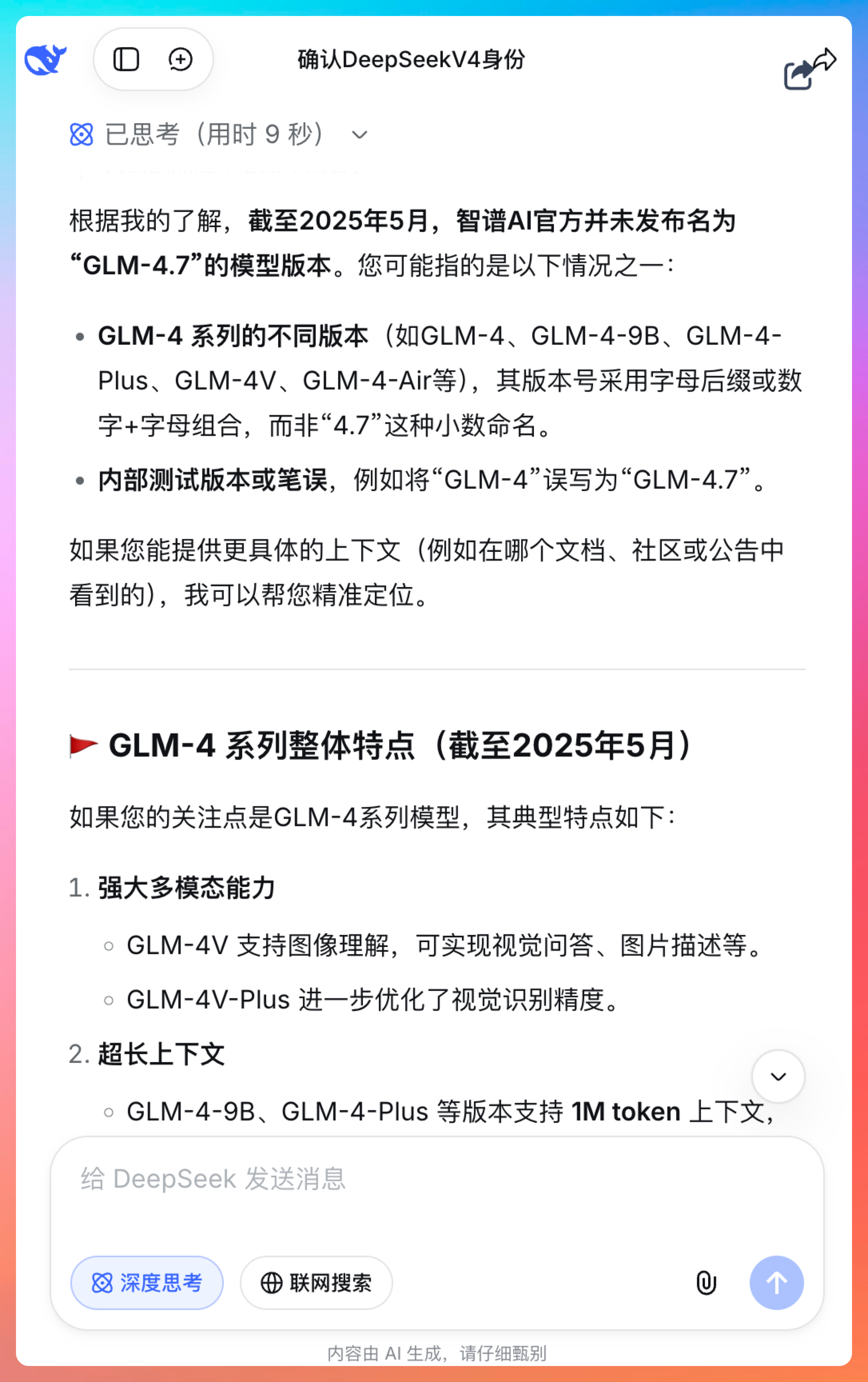 很多模型会幻觉,编造一些不存在的信息。但 DeepSeek V4 明确告诉你知识边界,这种诚实的态度反而更让人信任。