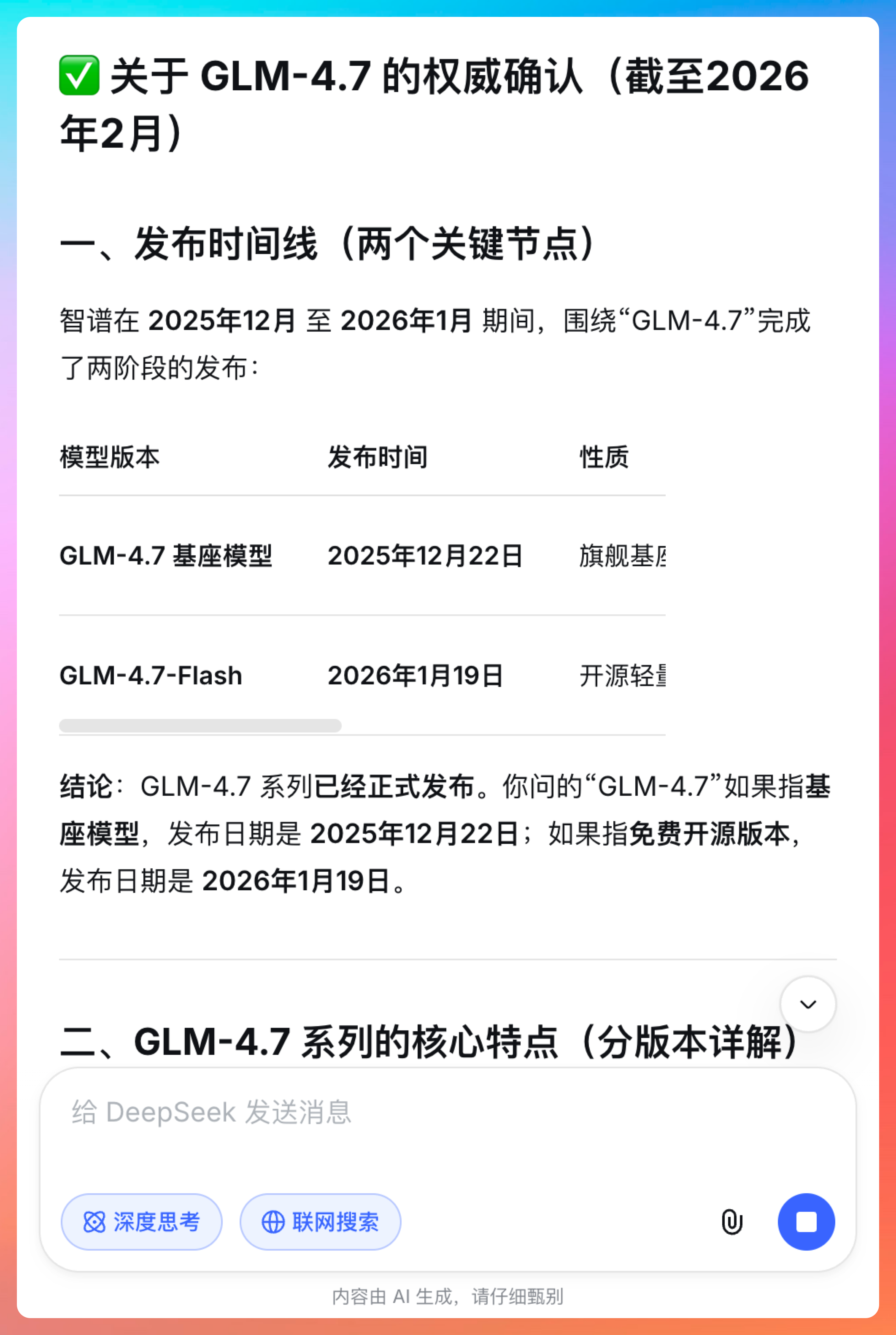 注意我这里特意把联网搜索关掉了,能看到 DeepSeek 给出的答案是非常准确的:
