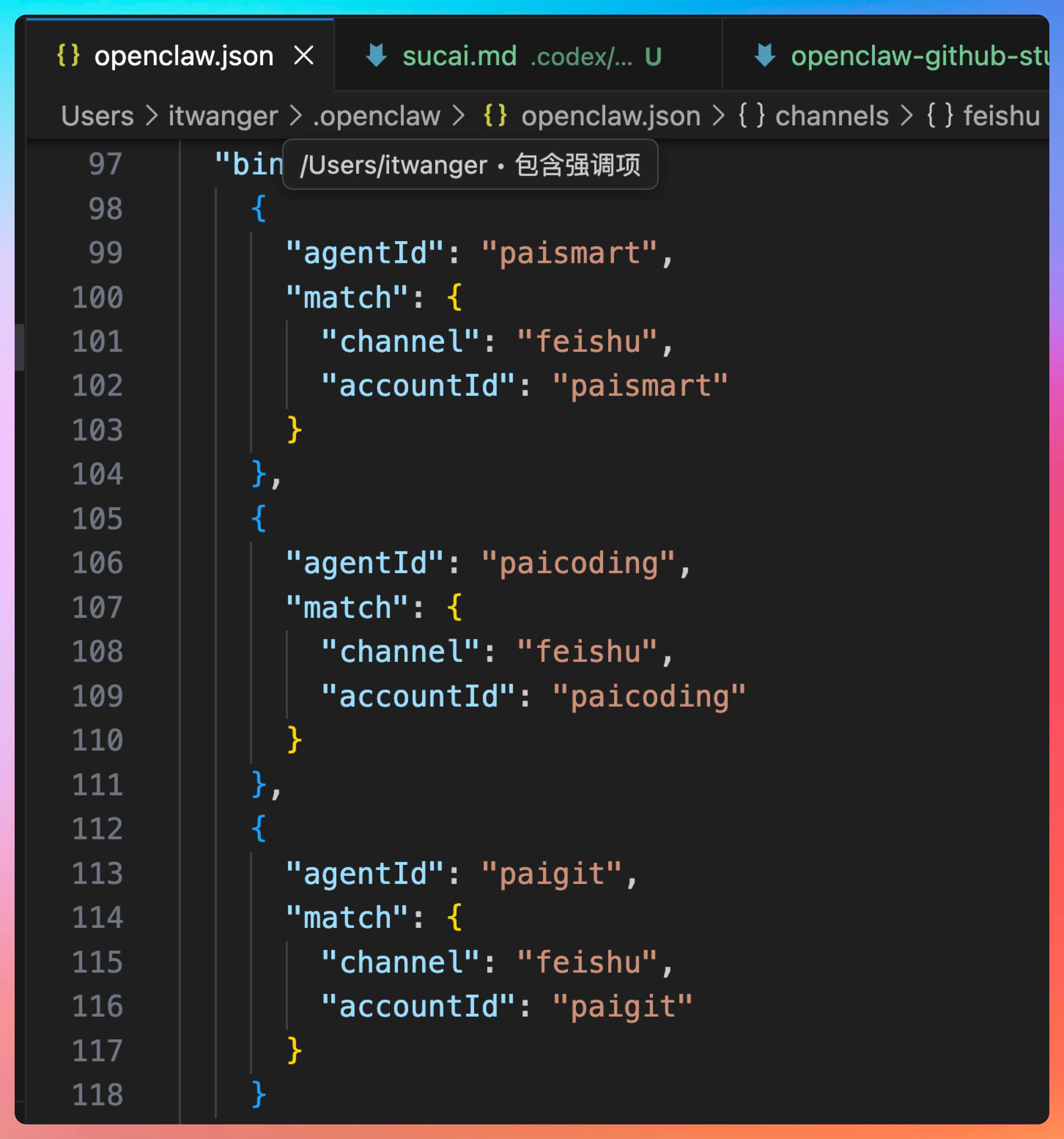 换句话说,你不是在“给同一个机器人加皮肤”,你是在同一个 Gateway 下面养多只彼此隔离的小龙虾。