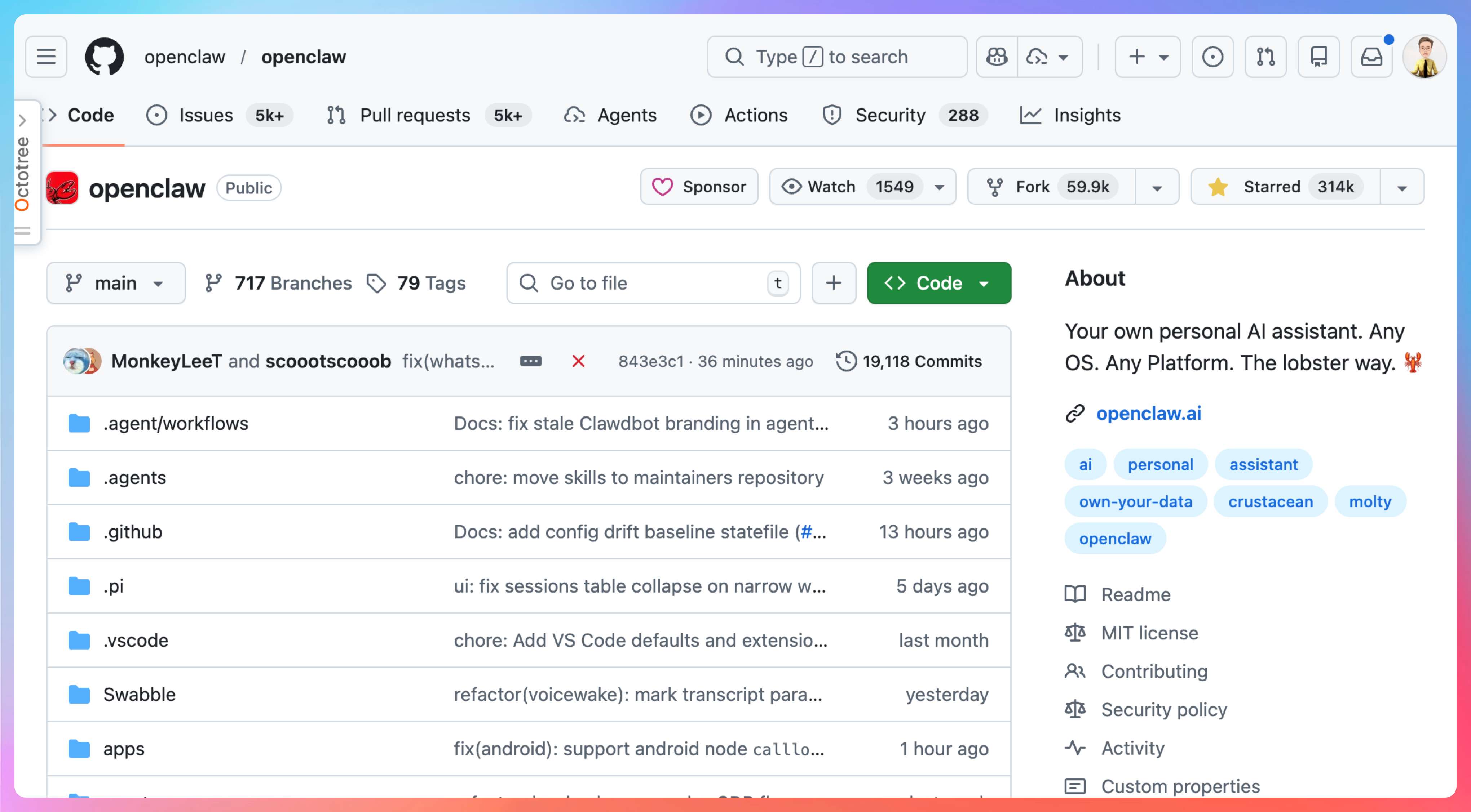 因为它不是一个单纯的前端项目,也不是一个只会收发消息的机器人项目,它横跨了 CLI、Gateway、聊天渠道、工作区文件、Agent 运行时、插件、工具系统。