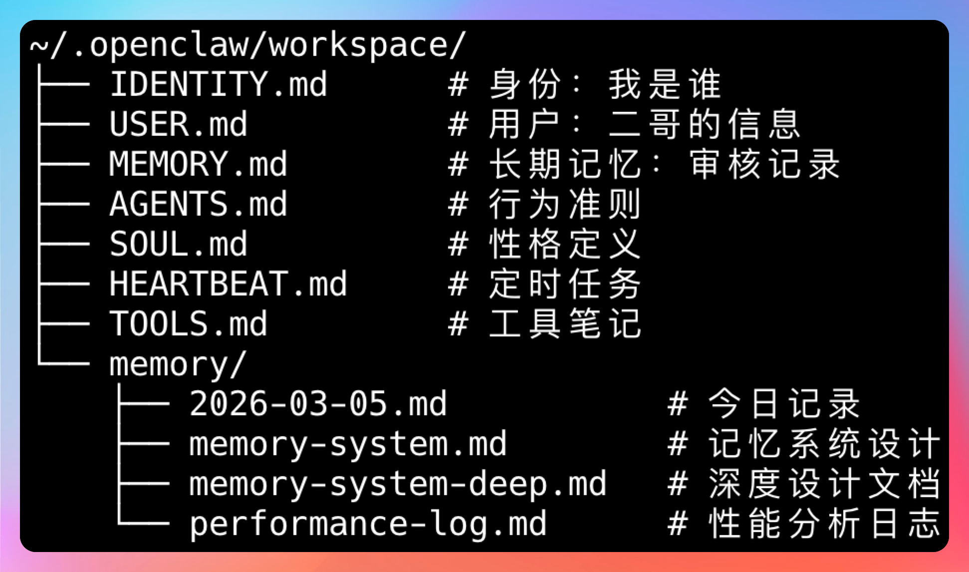 所以实际运作起来,MEMORY.md 不会无限膨胀。它更像是一本精炼的工作手册,龙虾每次上班前翻一遍,知道今天要干什么、怎么干。