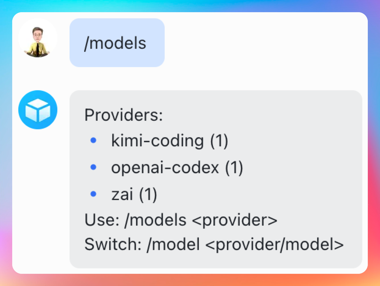 默认共用 Gateway 配置的模型,但也可以在每个 Agent 的工作区单独配置,实现不同 Agent 用不同模型的效果。比如 paicoding 用 GLM-5 省成本,PaiFlow 用 GPT-5.4 追效果。
