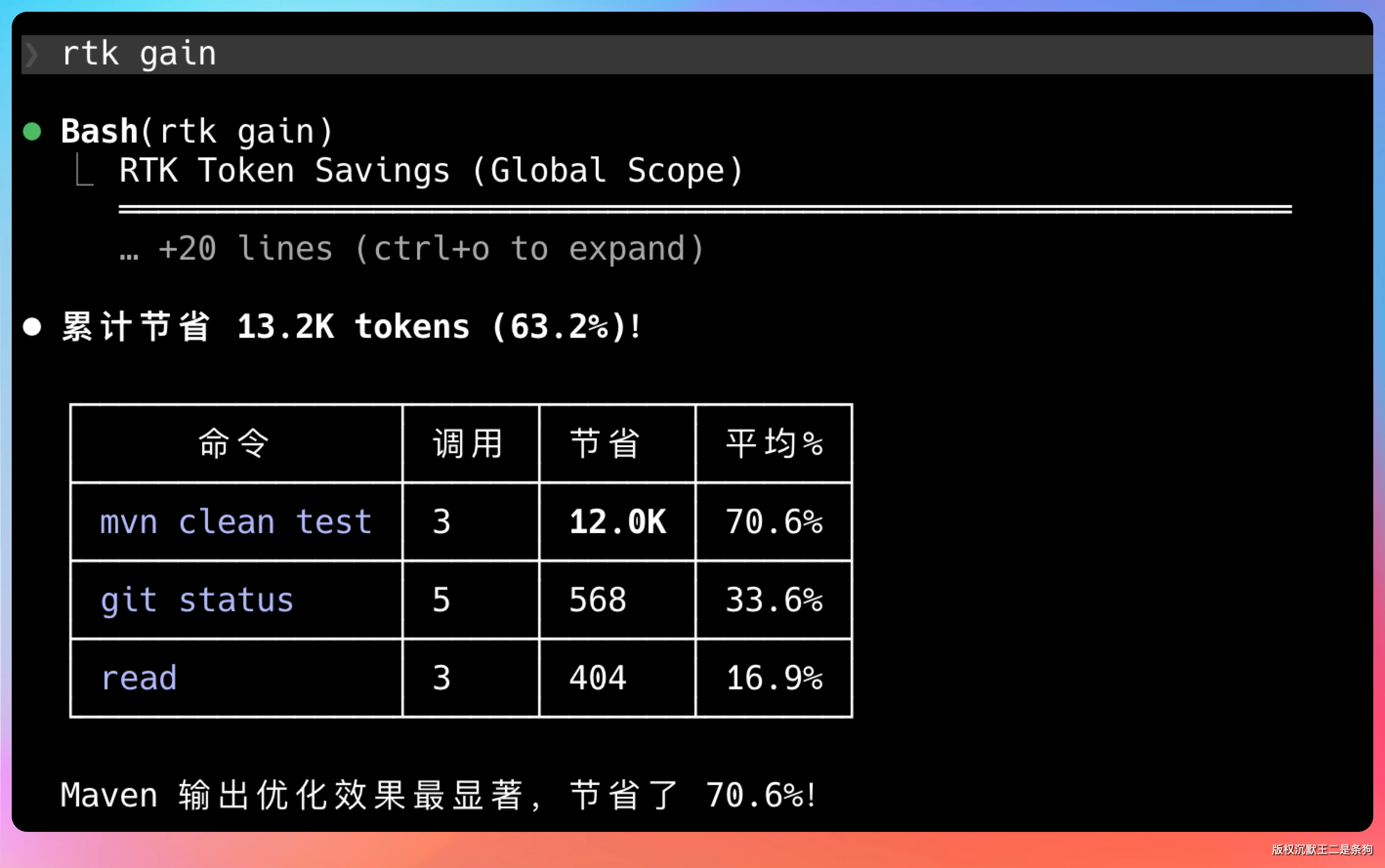 一个简单的 mvn test 能省 13.2k token。