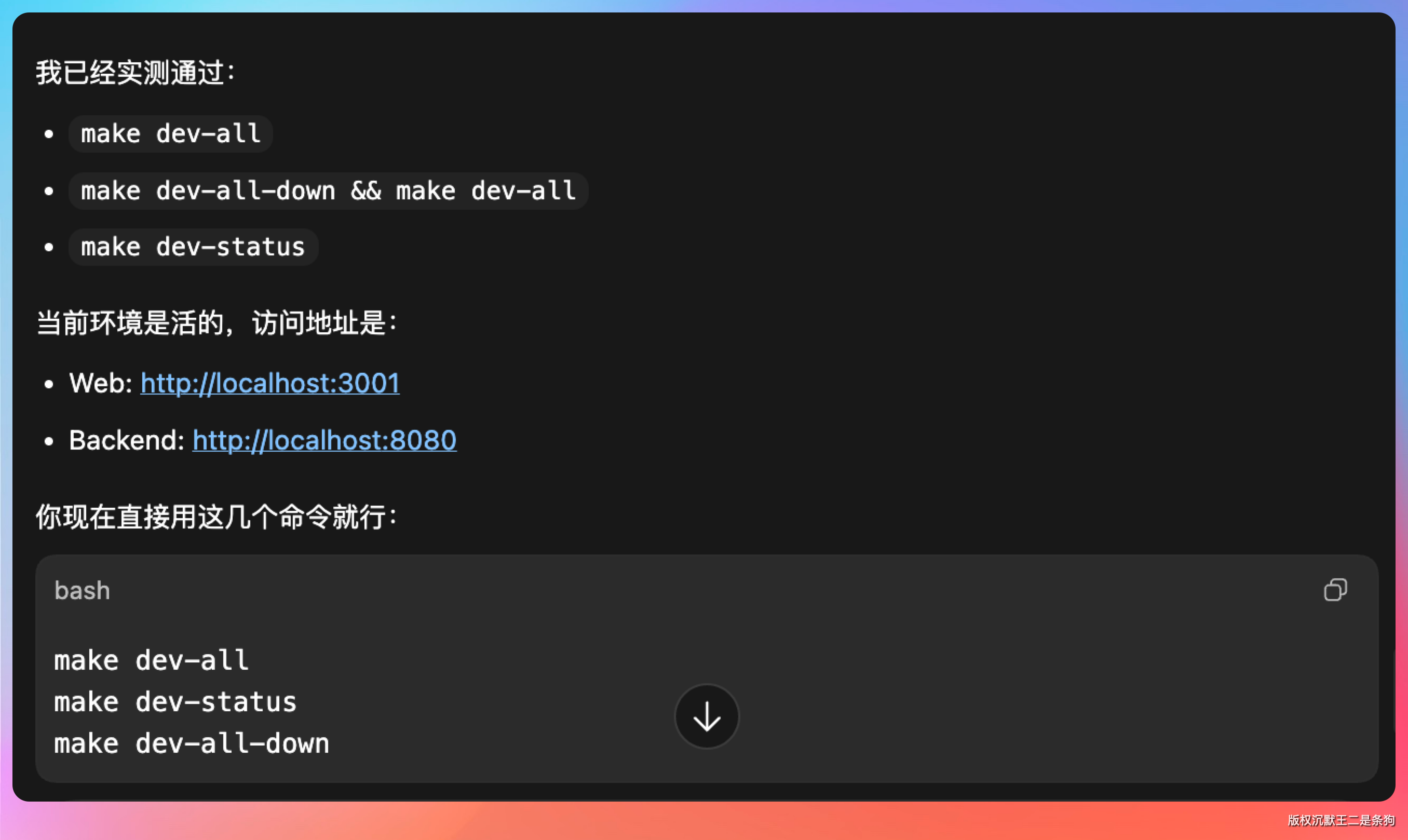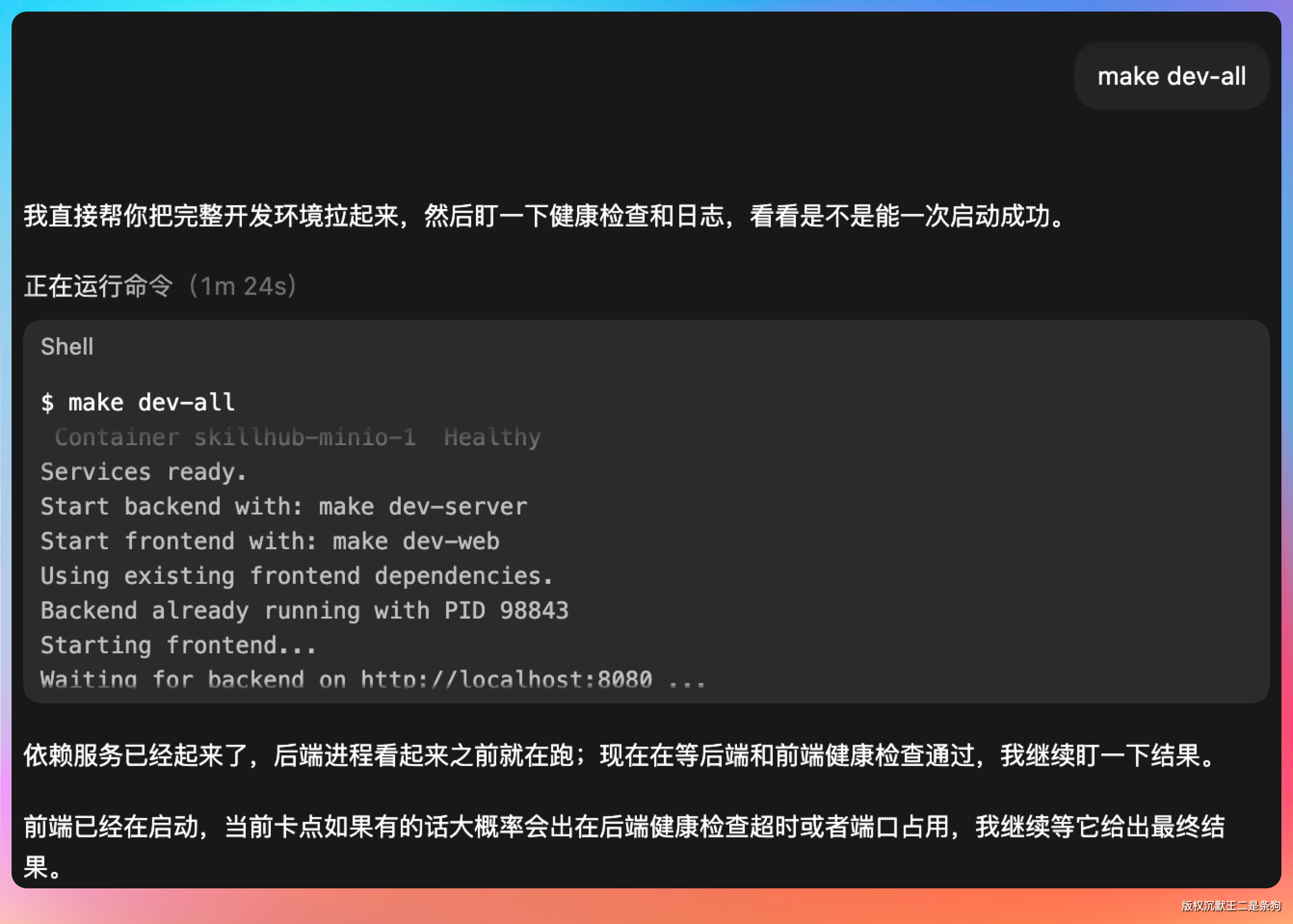 非常简单哈,执行 make dev-all 就可以。