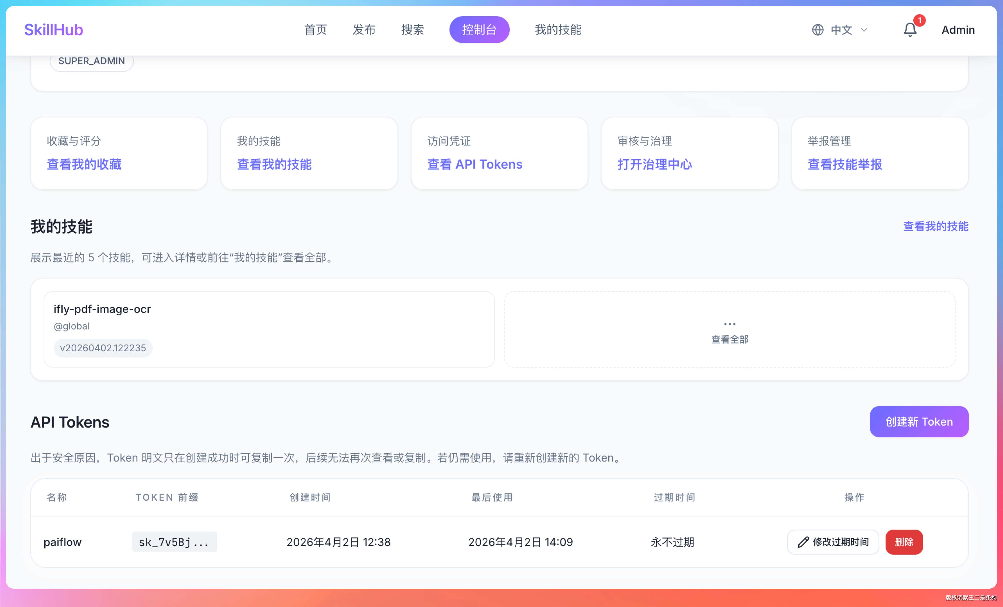 我之前就有做这样一个实战项目的打算,看来可以基于 SkillHub 进行二开了,哈哈。科大讯飞牛的,无需多言。