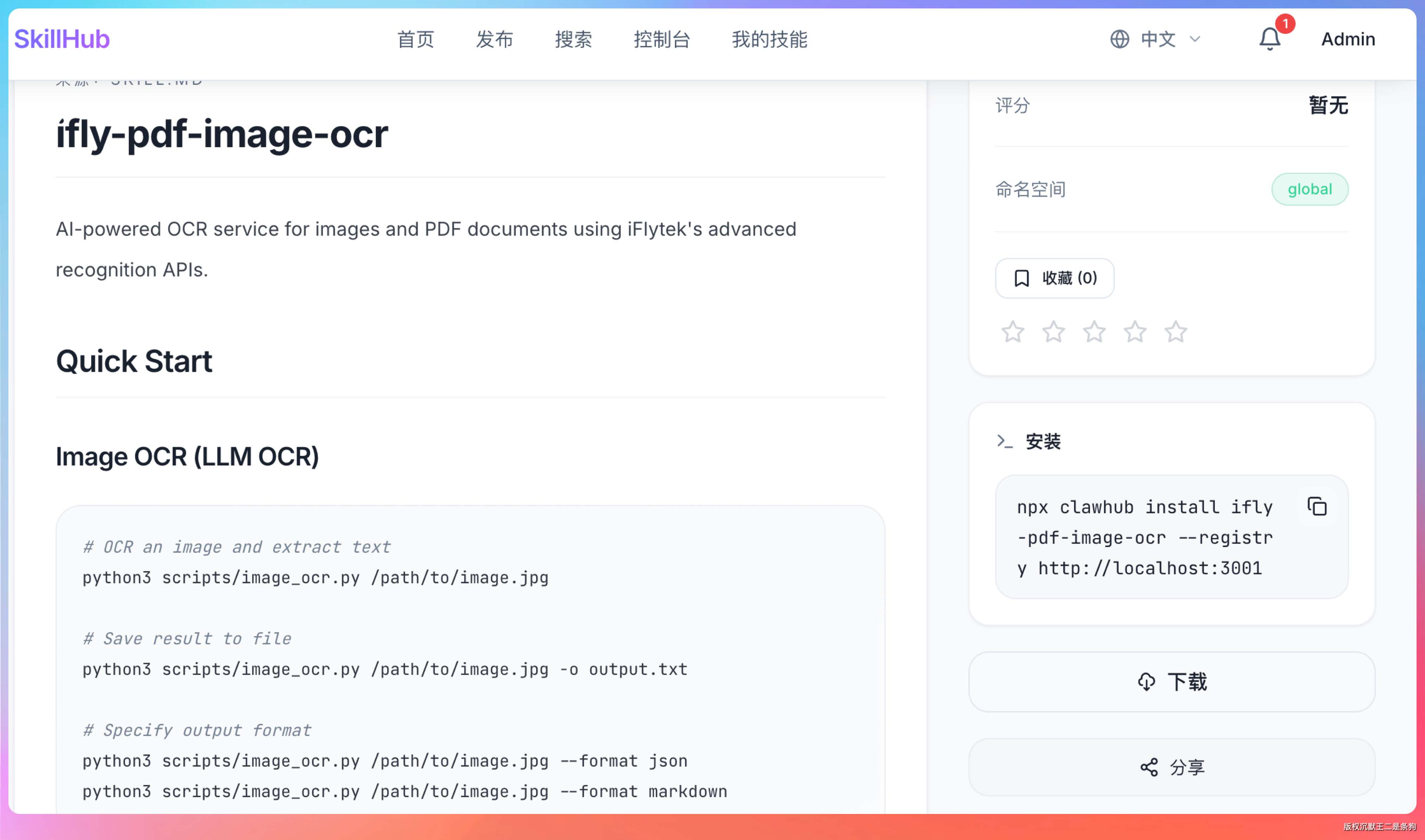 npx clawhub install ifly-pdf-image-ocr --registry http://localhost:3001