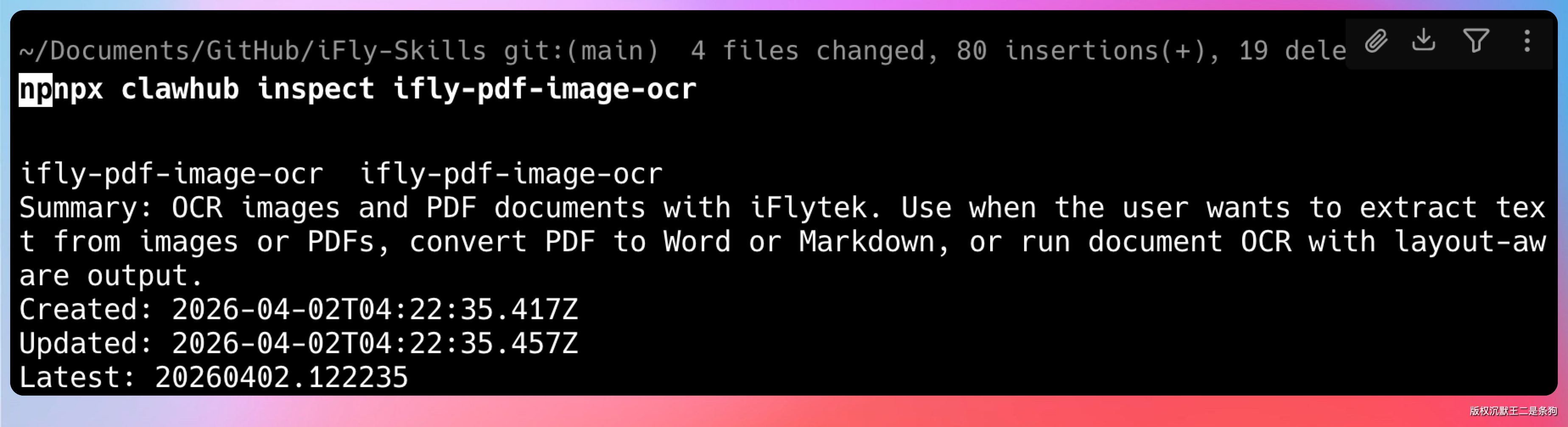 npx clawhub inspect ocr-team--ifly-pdf-image-ocr当然了。