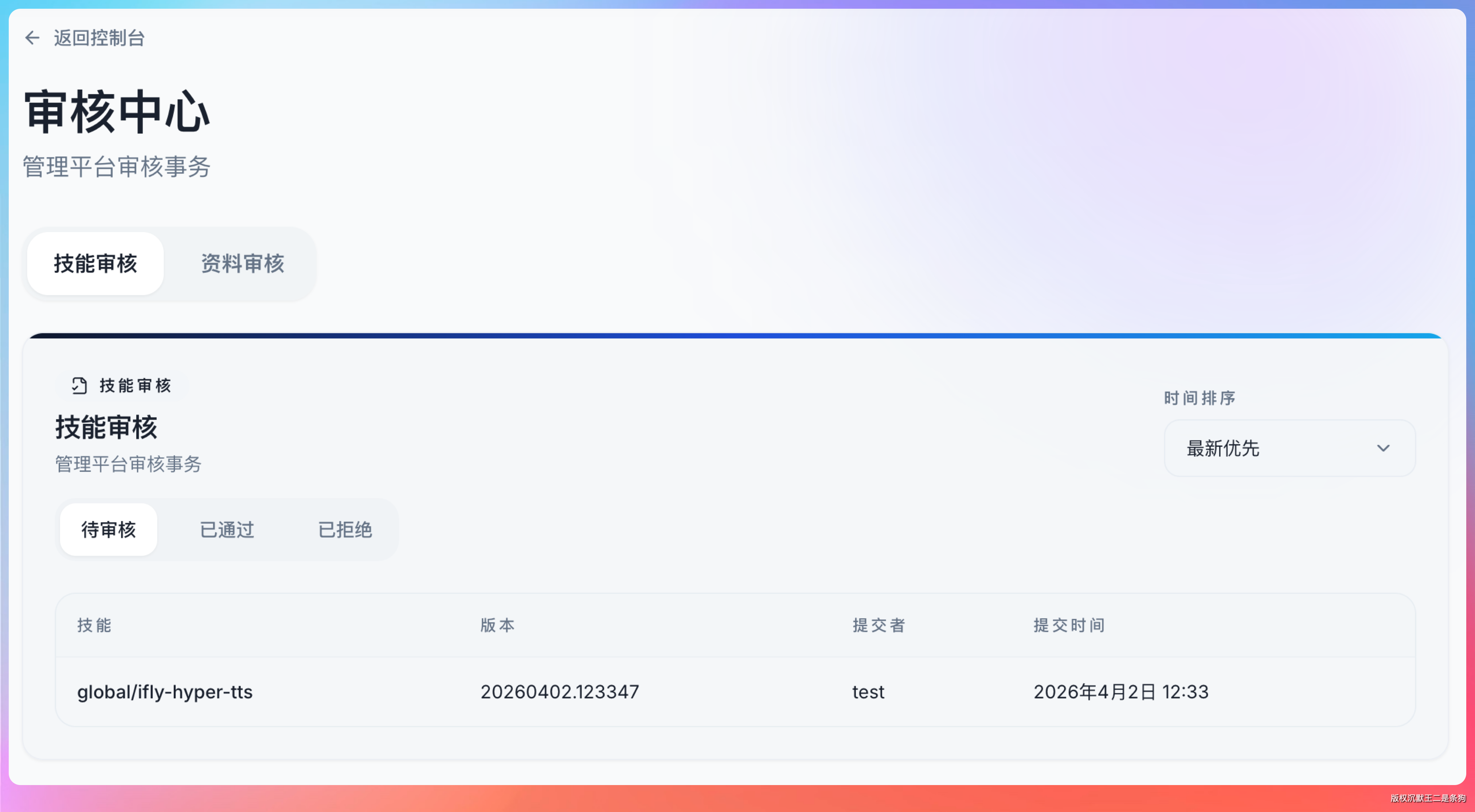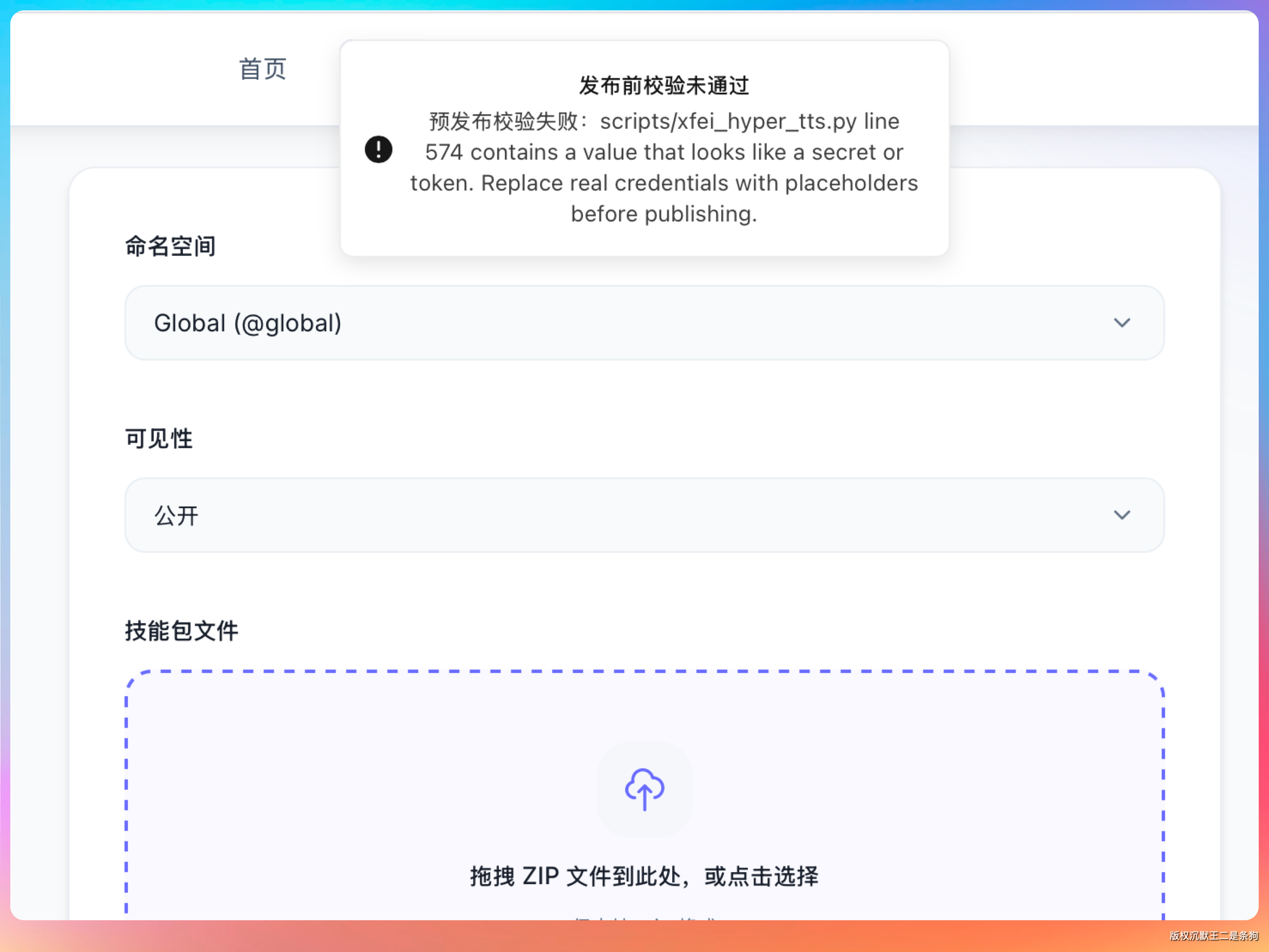 技能包上传后,系统会自动解压并进入审核队列。后台有一个独立的扫描服务,会对技能包进行多维度的安全检查。