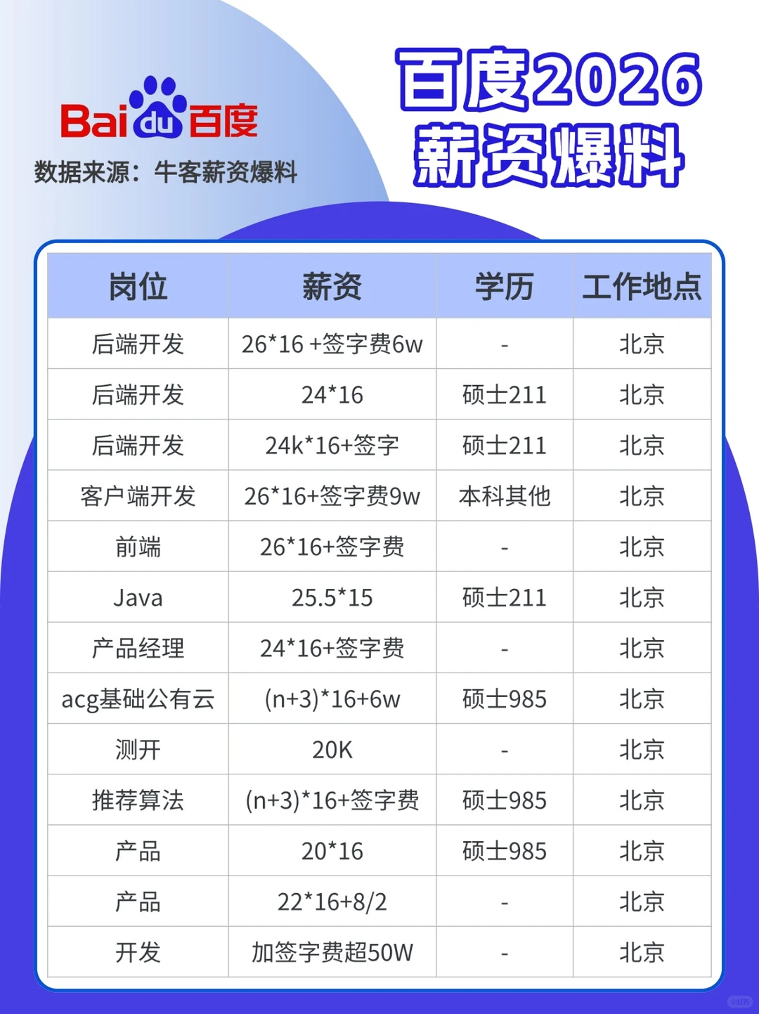 来看一眼百度研发岗位的薪资吧。
