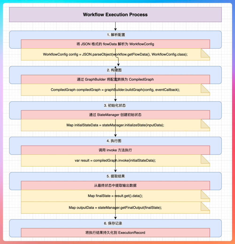Java版的工作流引擎是基于JDK 21+Spring Boot 3.5+SpringAI 1.1+LangGraph4J构建的,采用多线程并发模型。持久层框架为MyBatis-Plus 3.5,HTTP客户端为Okhttp 4.12,JSON序列化和反序列化为Fastjson2 2.0。