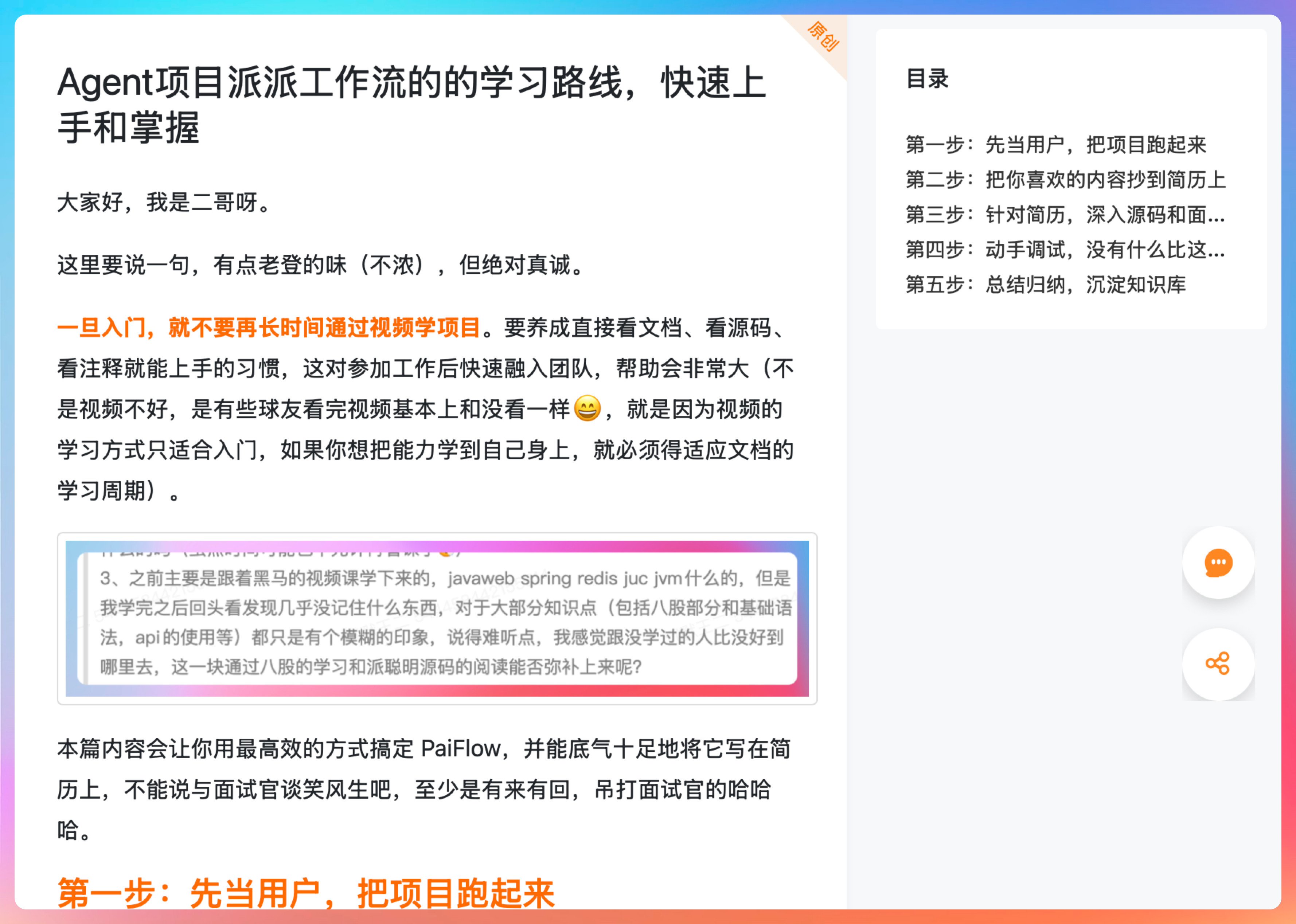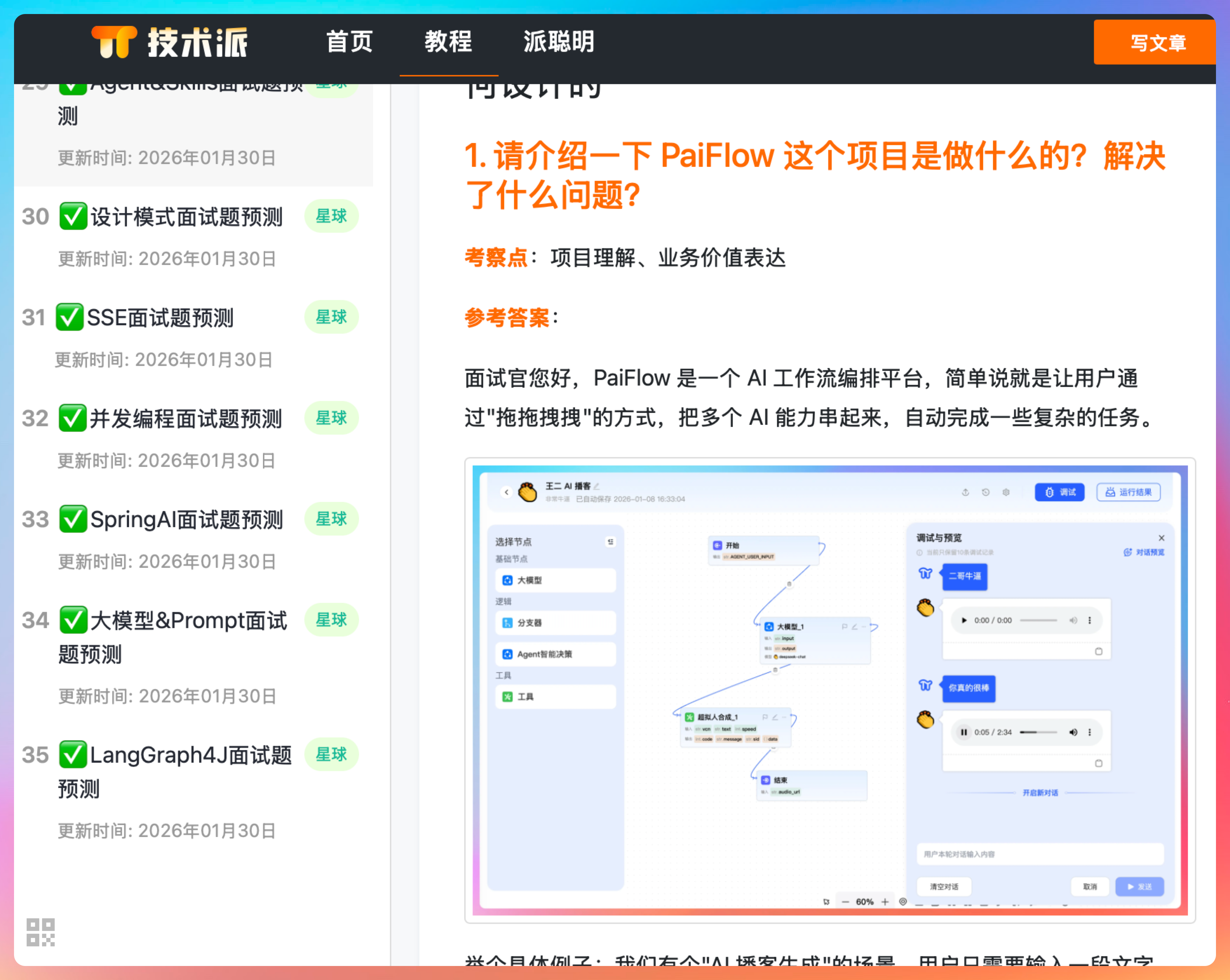 派派工作流Agent的教程,这次托管在技术派教程上,之前只要在技术派上绑定过星球的成员编号,均可以解锁查看。
