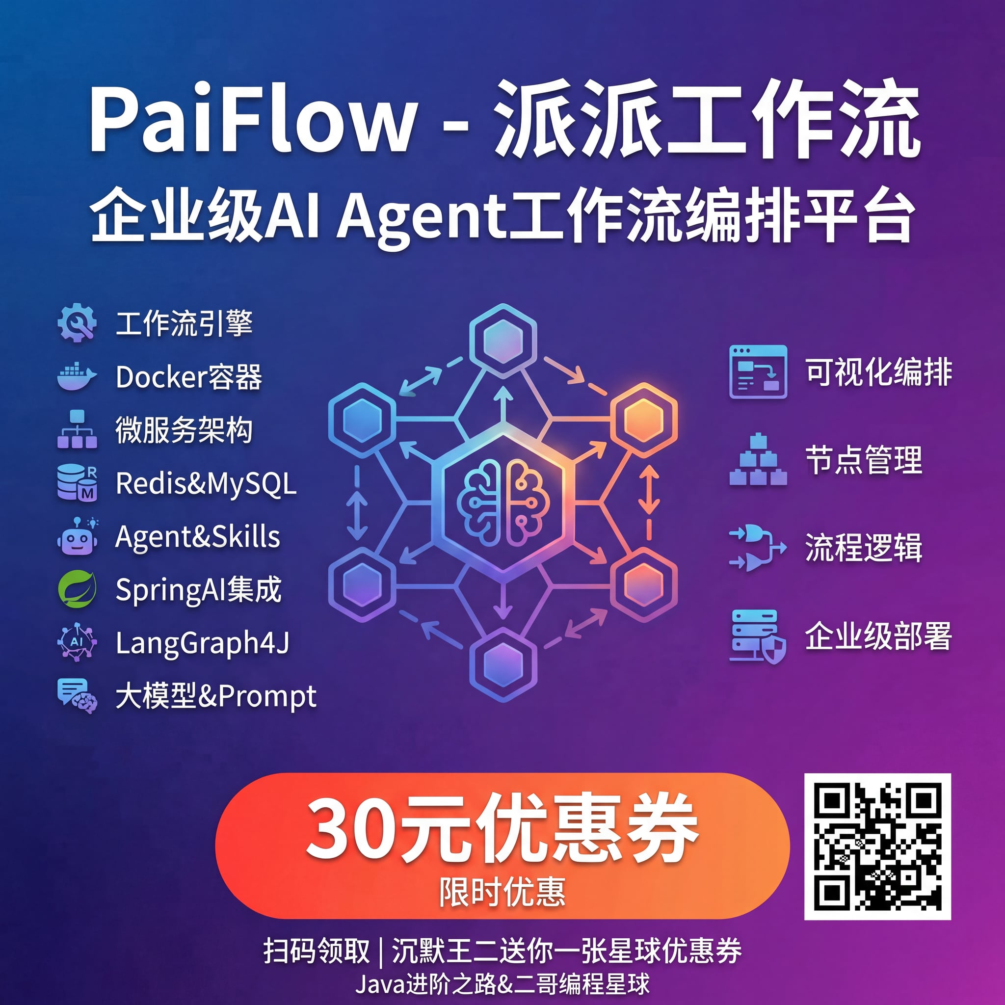 目前,派派工作流这个项目也收尾了,大家可以放心冲 😊。并且一次购买不需要额外付费,即可获取星球的所有付费资料,帮助你少走弯路,提高学习的效率。直接微信扫下面这个优惠券即可加入。