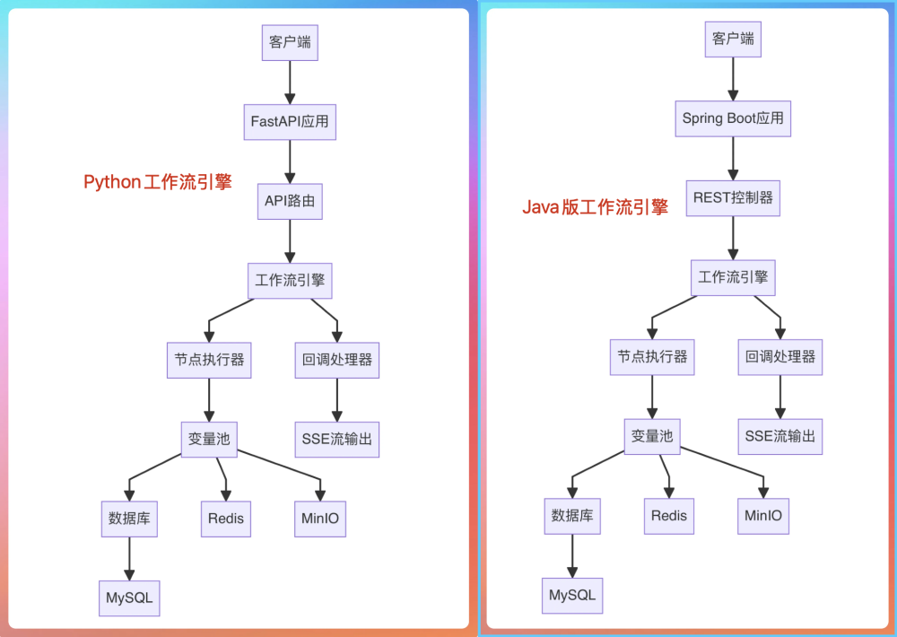 我们项目最初是用Python FastAPI配合LangChain实现的工作流引擎,后来考虑到企业级应用的需求,我们用Spring AI重构了一个新的版本。
