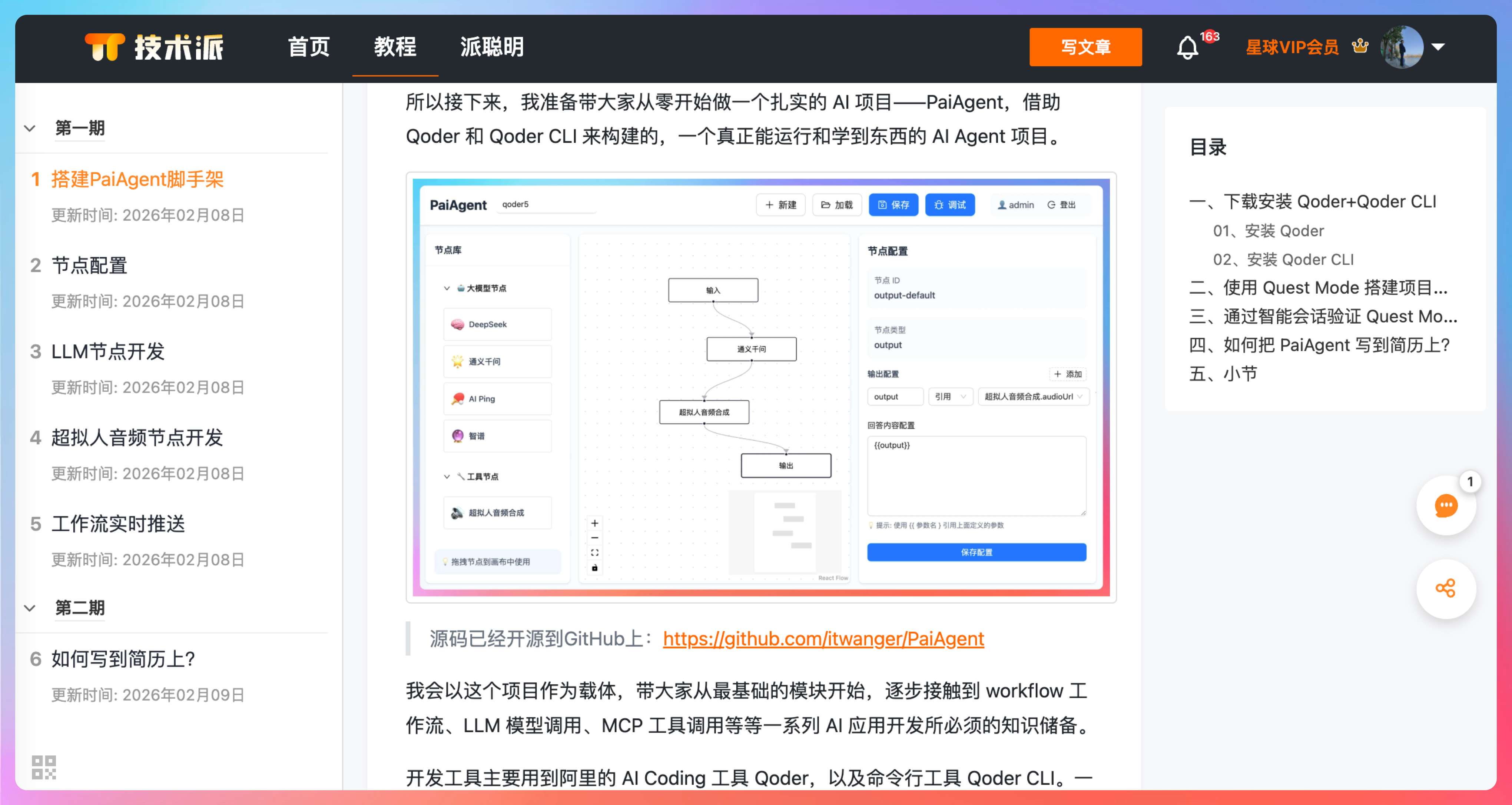 想要上手Vibe Coding的小伙伴请注意,PaiAgent项目的教程也是完全开放的:https://paicoding.com/column/14/1
