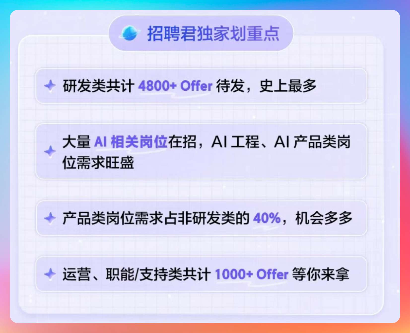这次真的是量大管饱,其中研发类占 4800+,大量 AI 相关的岗位。