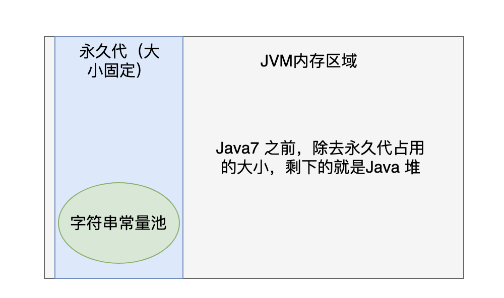 在 Java 7 之前,字符串常量池位于永久代(Permanent Generation)的内存区域中,主要用来存储一些字符串常量(静态数据的一种)。永久代是 Java 堆(Java Heap)的一部分,用于存储类信息、方法信息、常量池信息等静态数据。